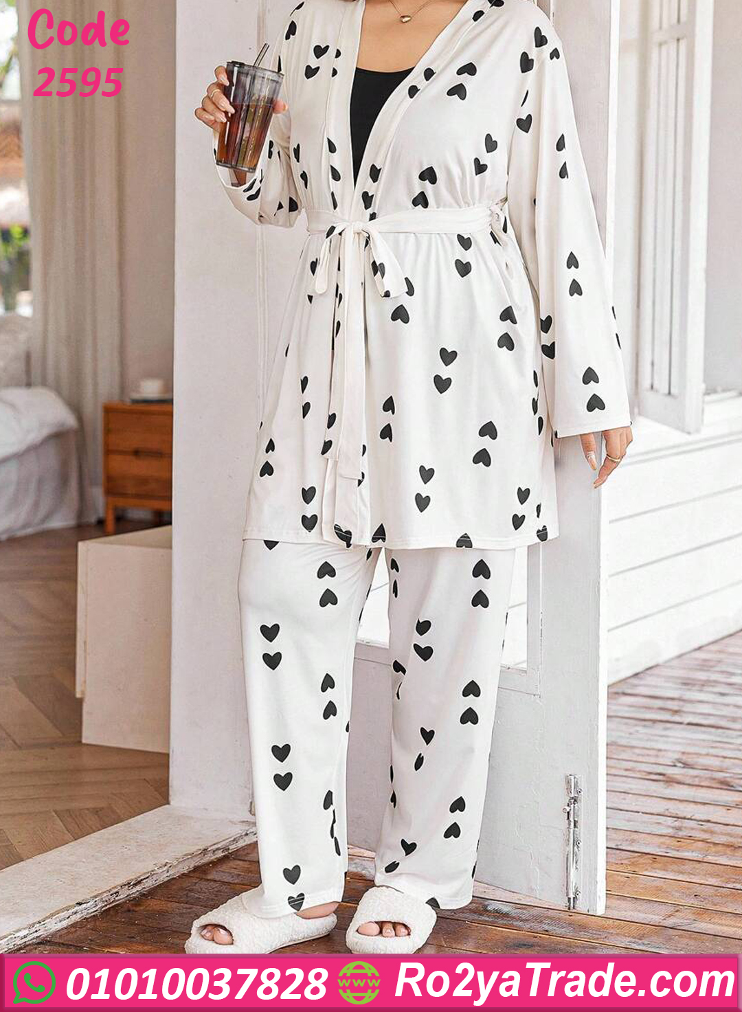بيجامة قلوب بالروب – كود 2595