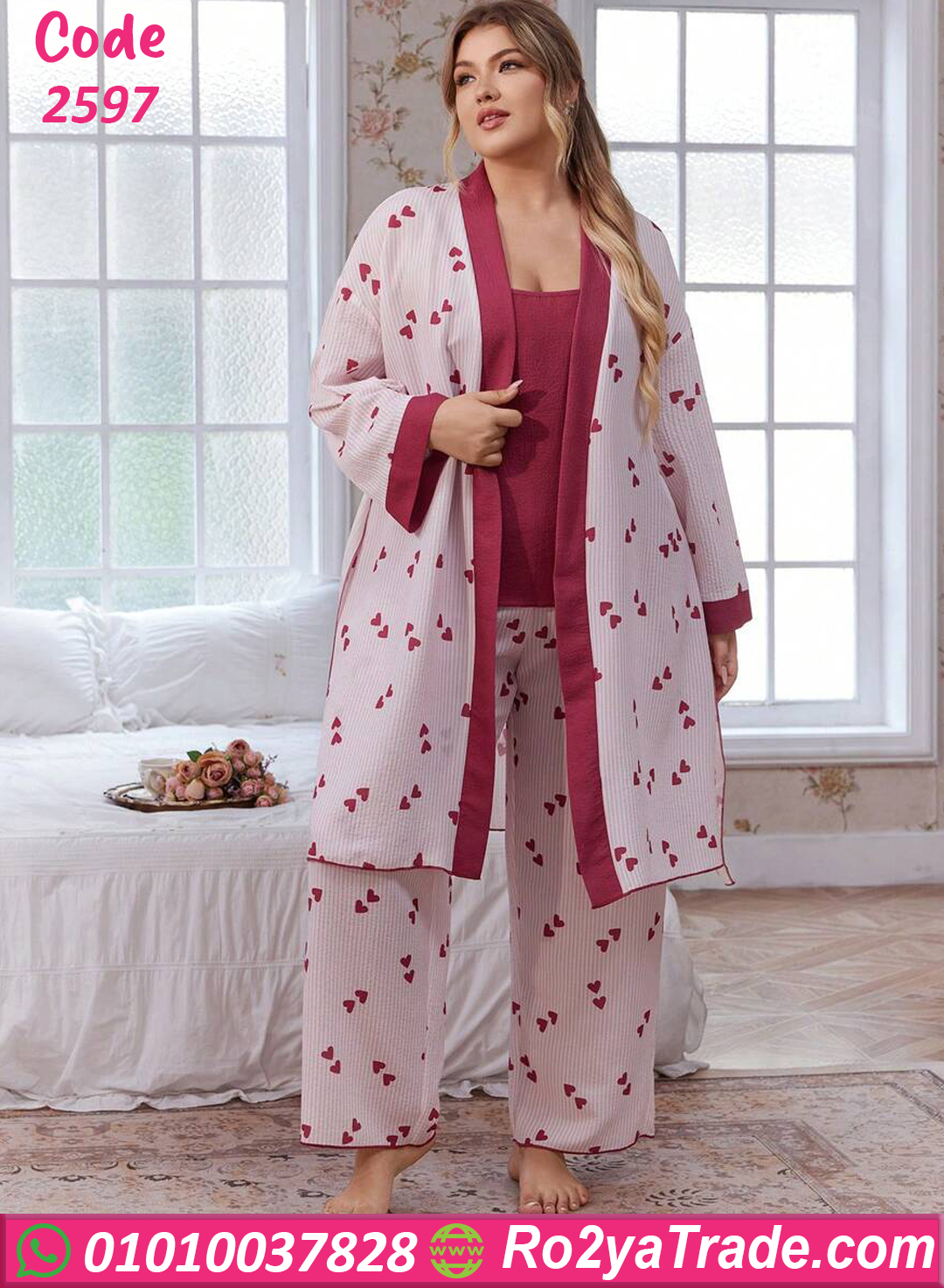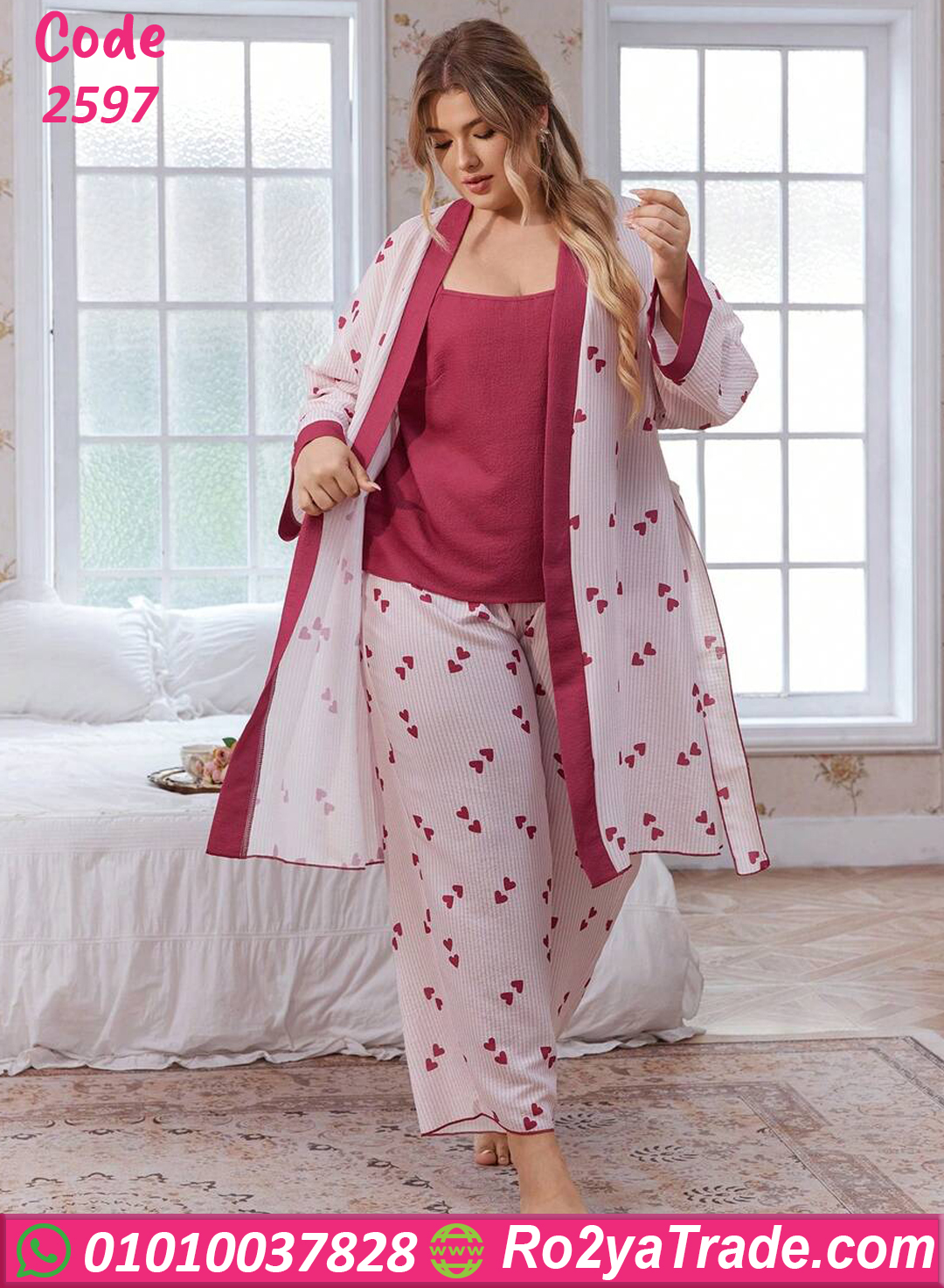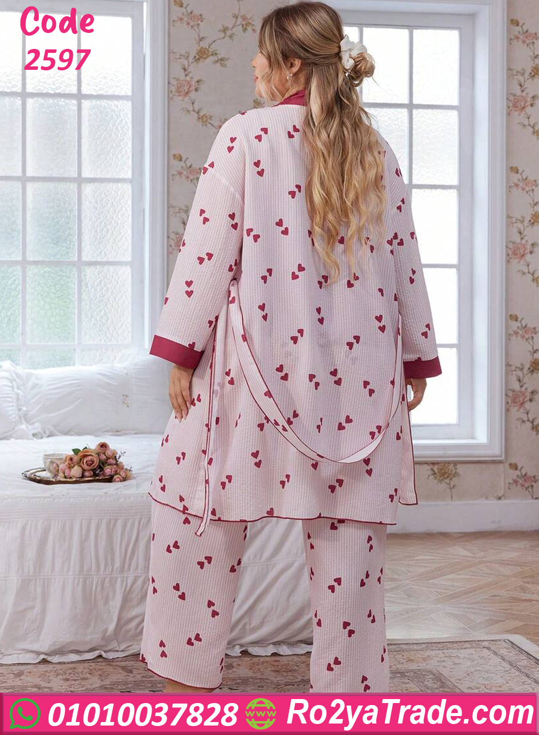 بيجامة قلوب بالروب – كود 2597