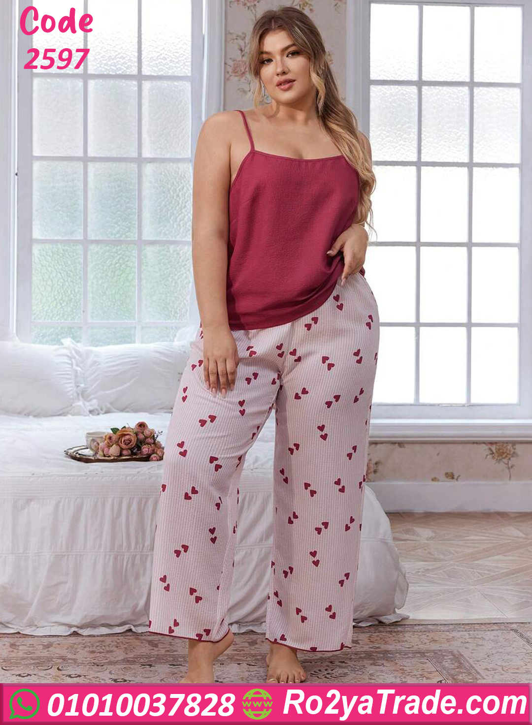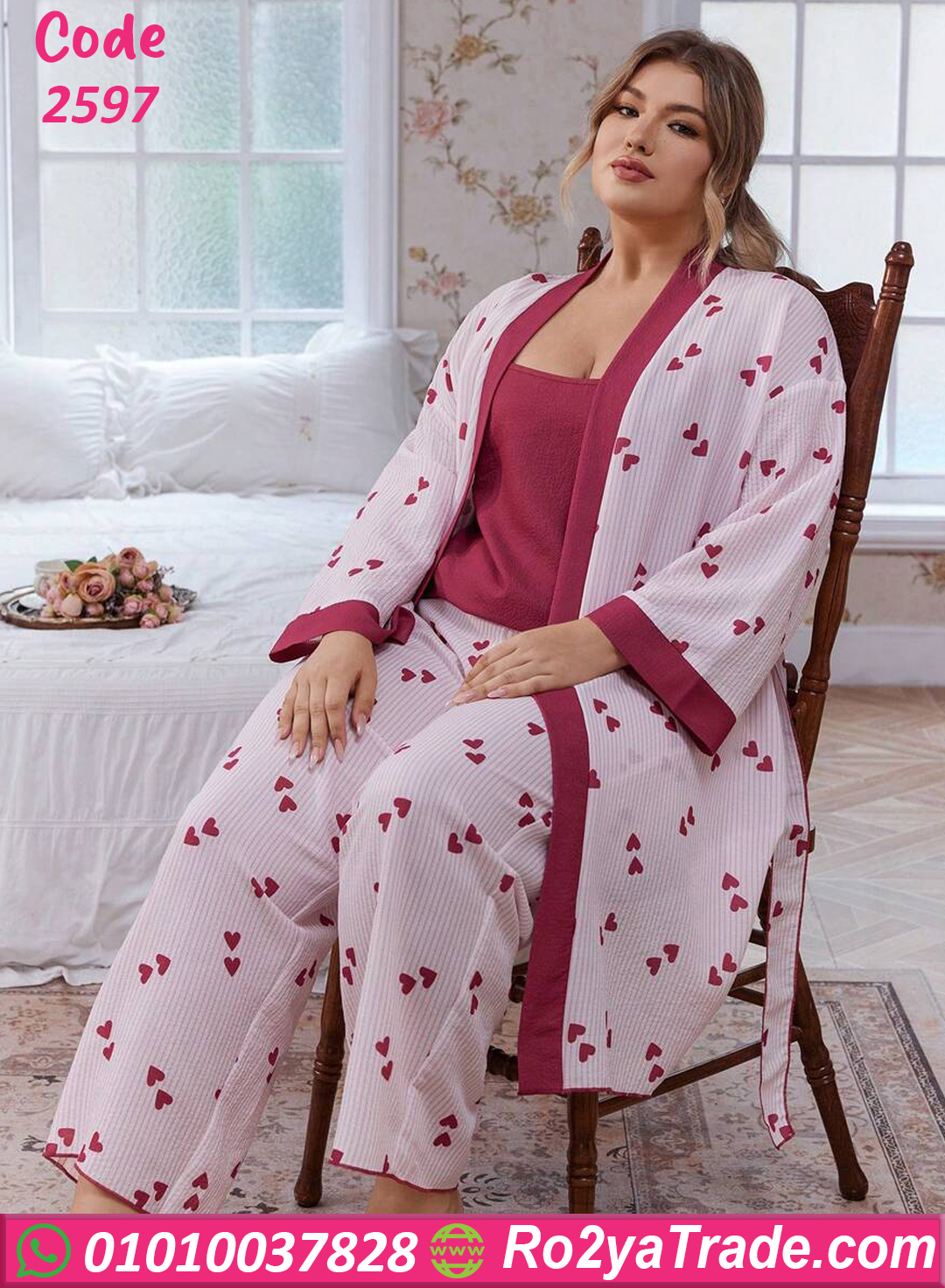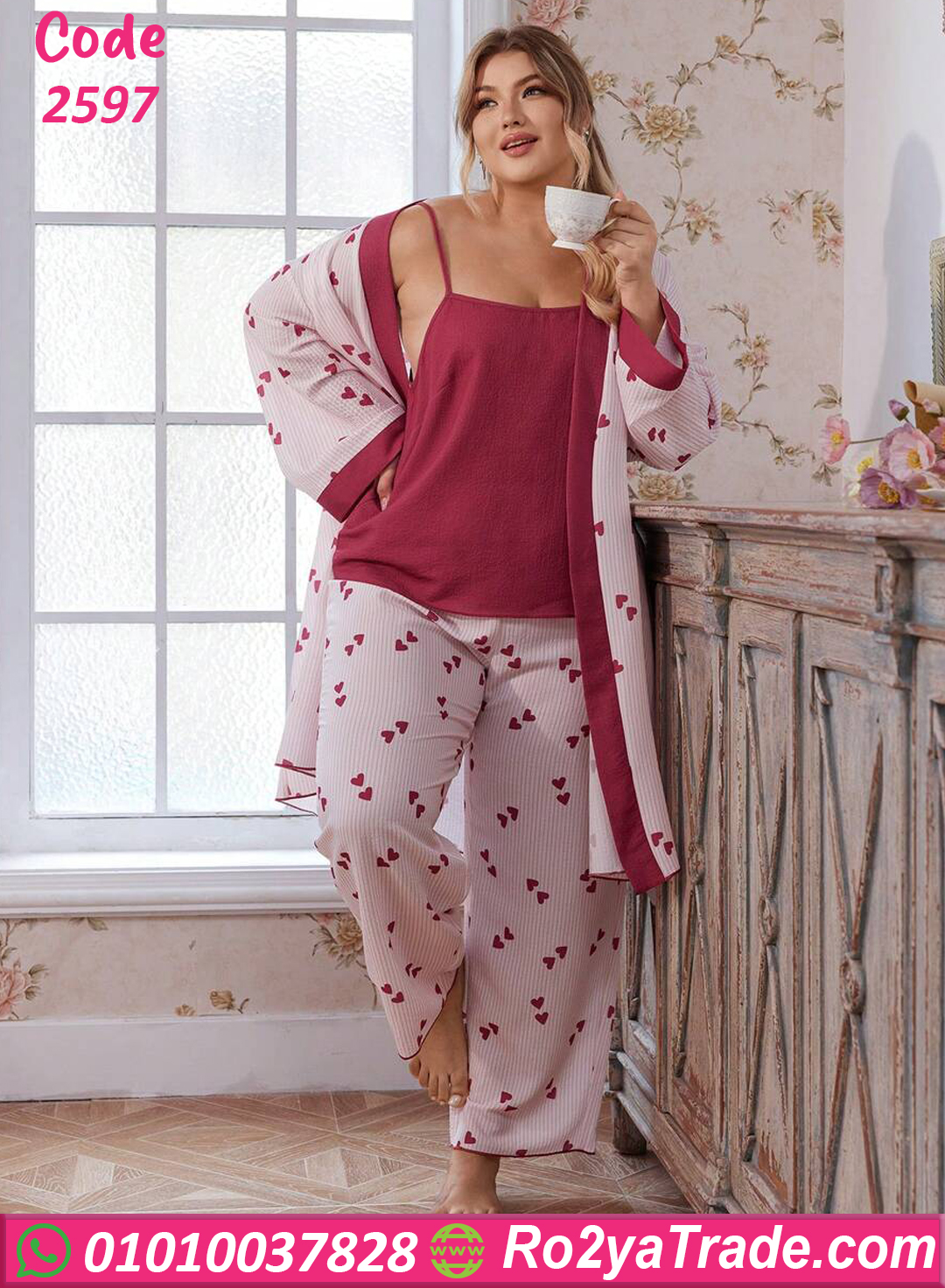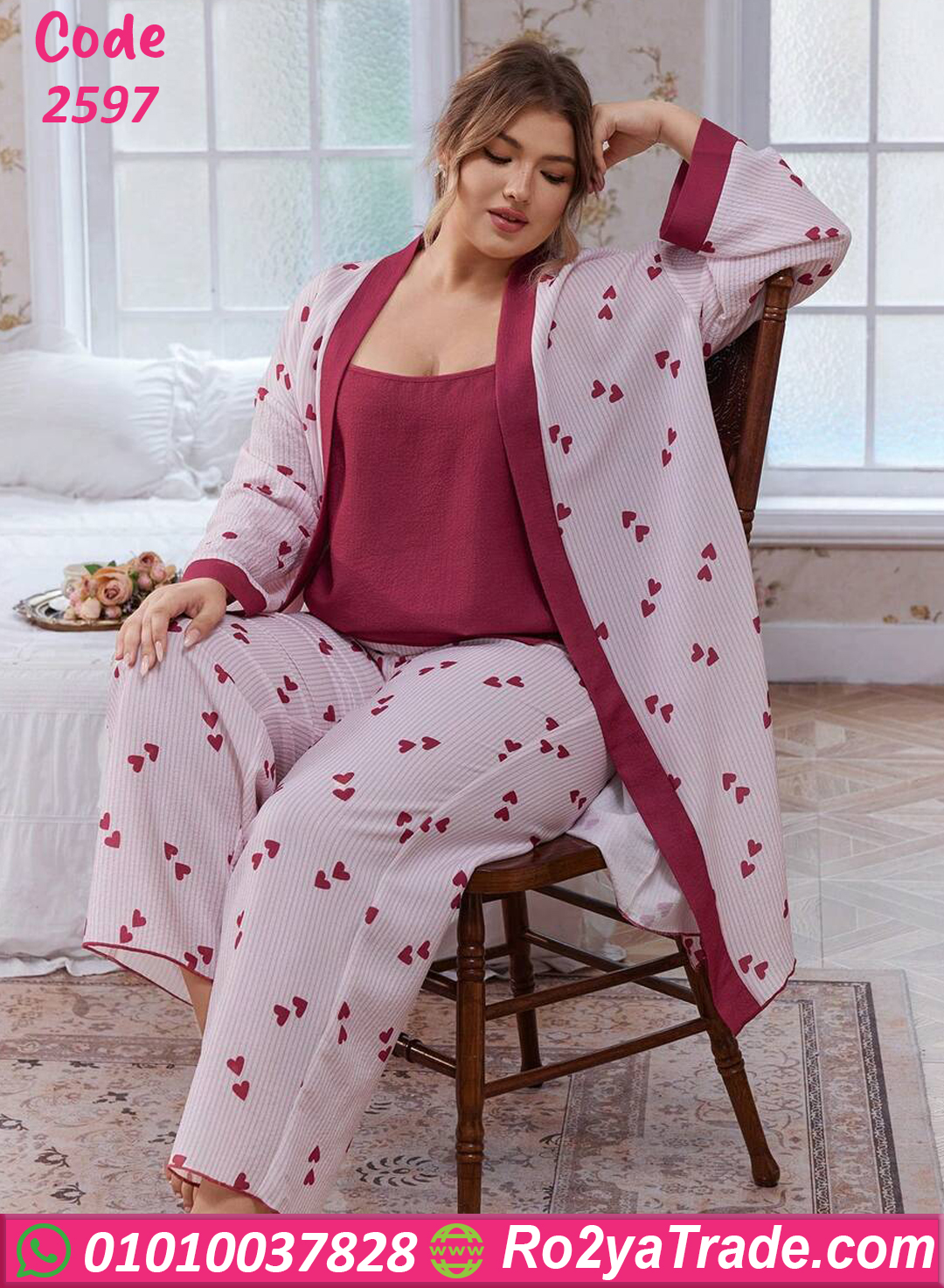 بيجامة قلوب بالروب – كود 2597