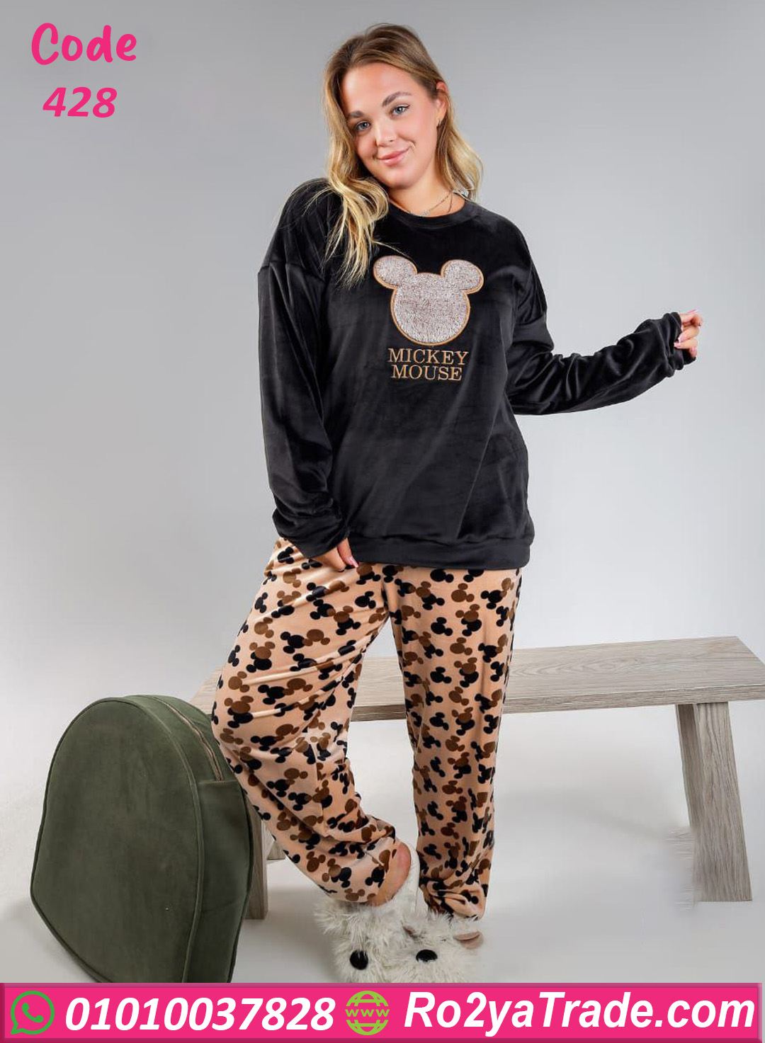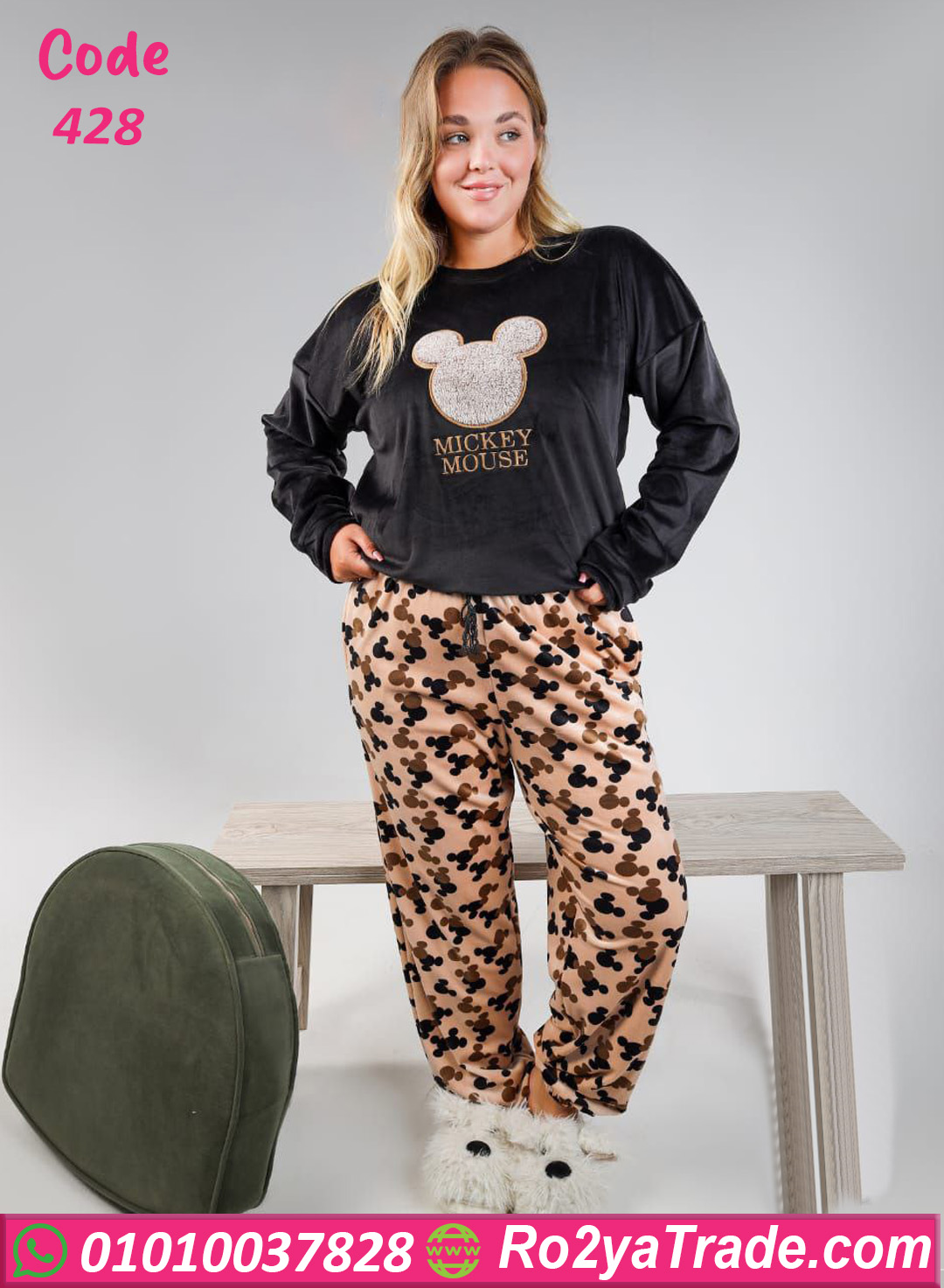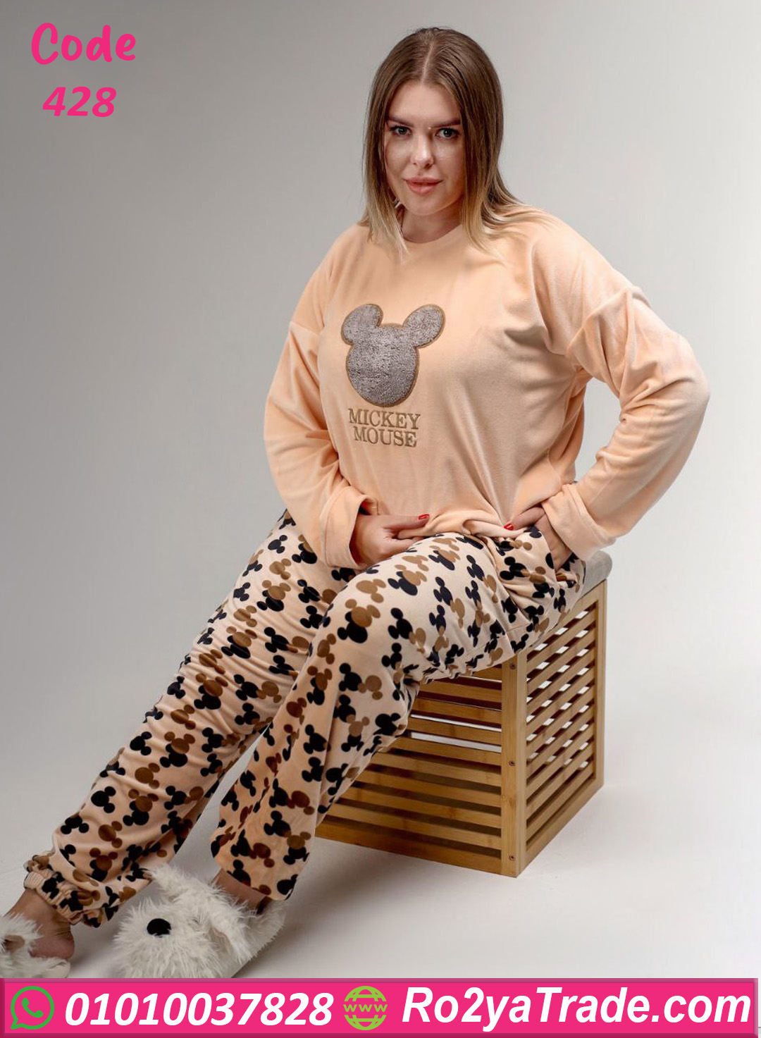 بيجامة شتوي حريمي بيج سايز بتصميم عملي ورسمة ميكي شيك، مناسبة للستات اللي بتحب الراحة مع شكل كيوت.