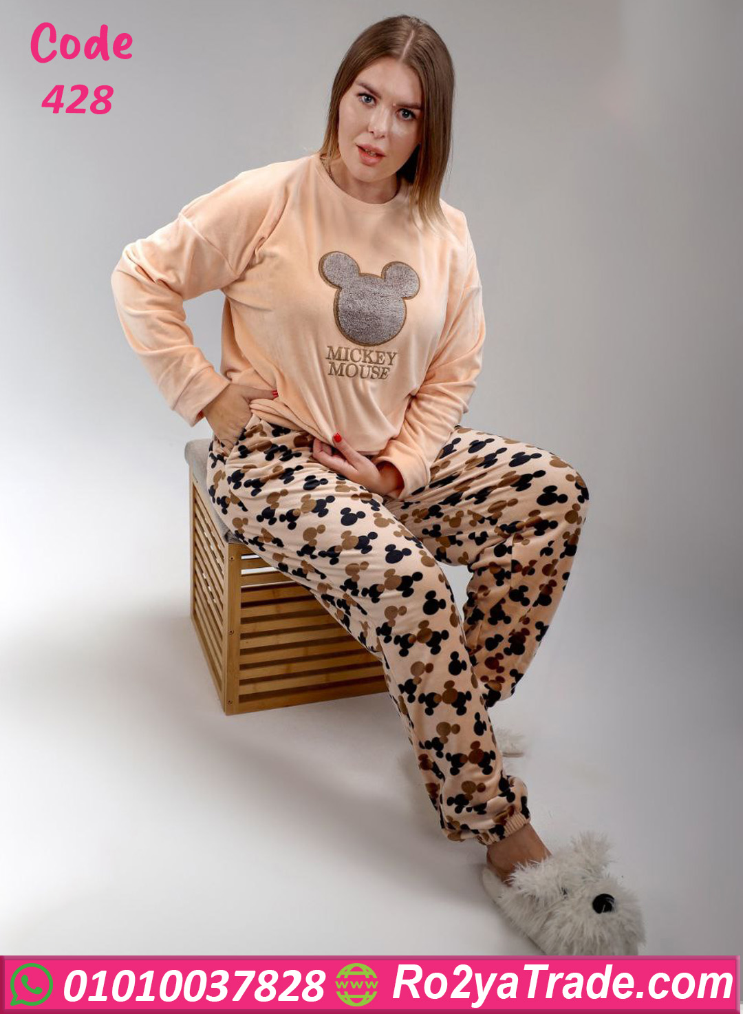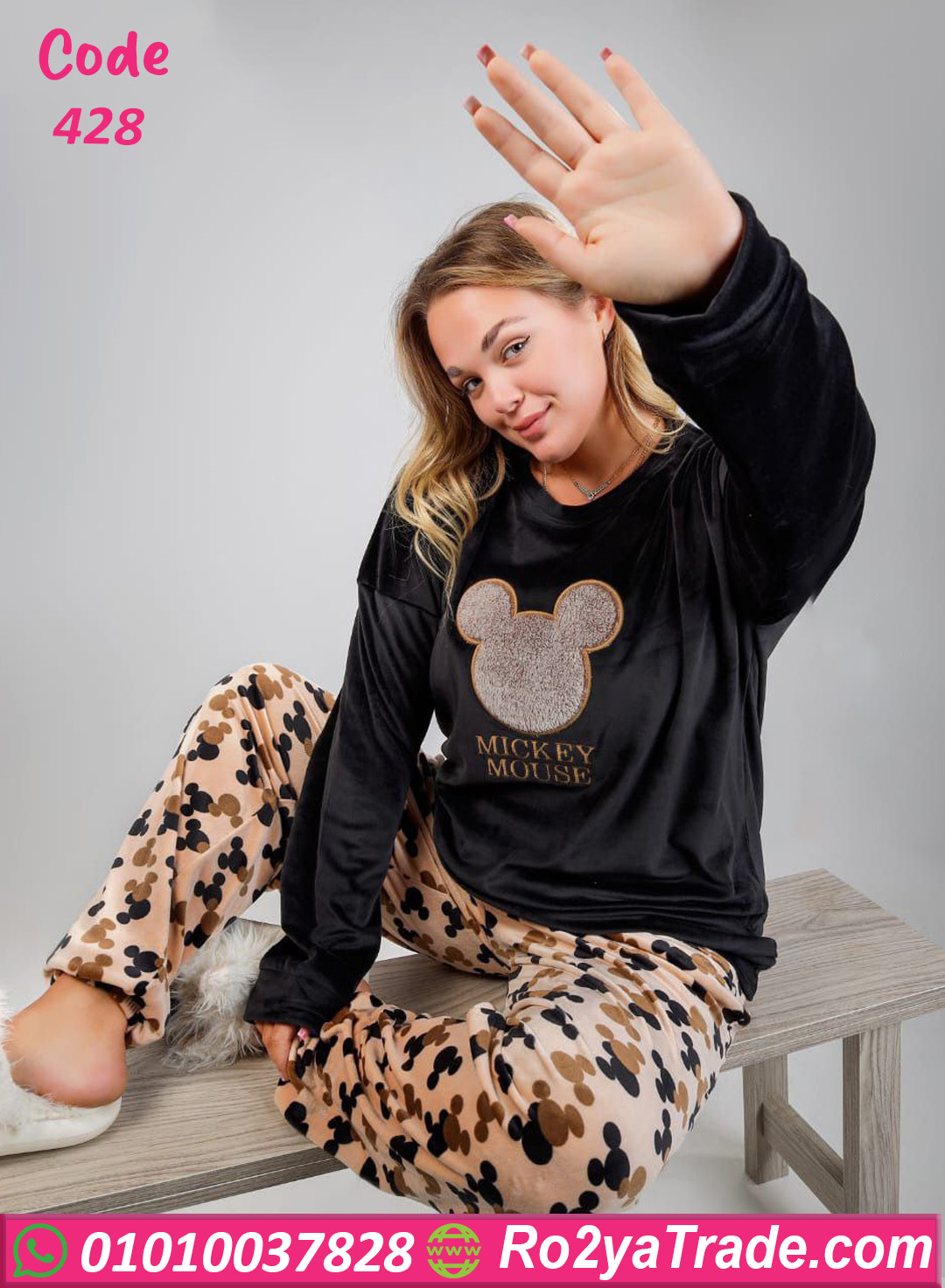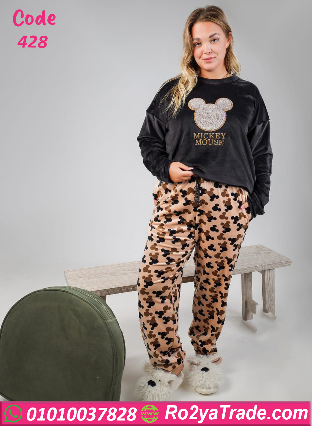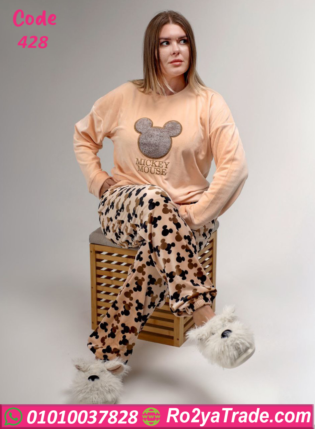 بيجامة شتوي حريمي بيج سايز بتصميم عملي ورسمة ميكي شيك، مناسبة للستات اللي بتحب الراحة مع شكل كيوت.