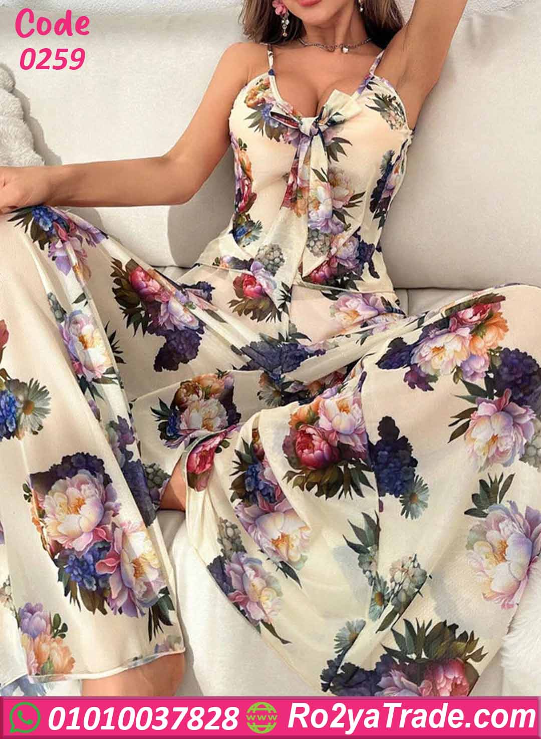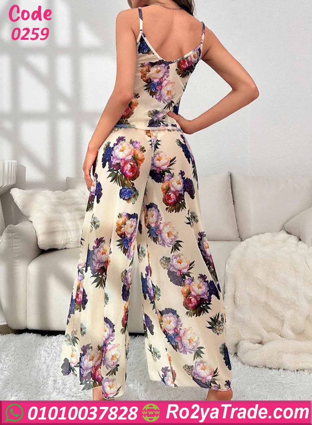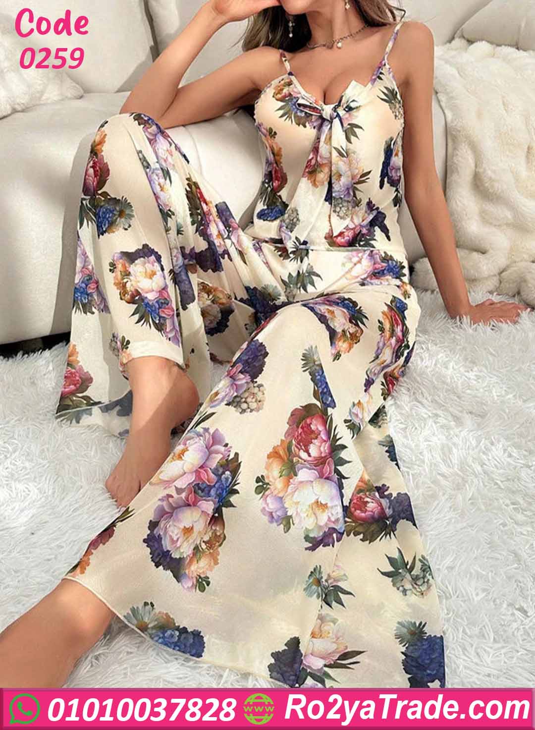 بيجامة نسائية صيفي بنقشة ورد أنيقة – كود 0259