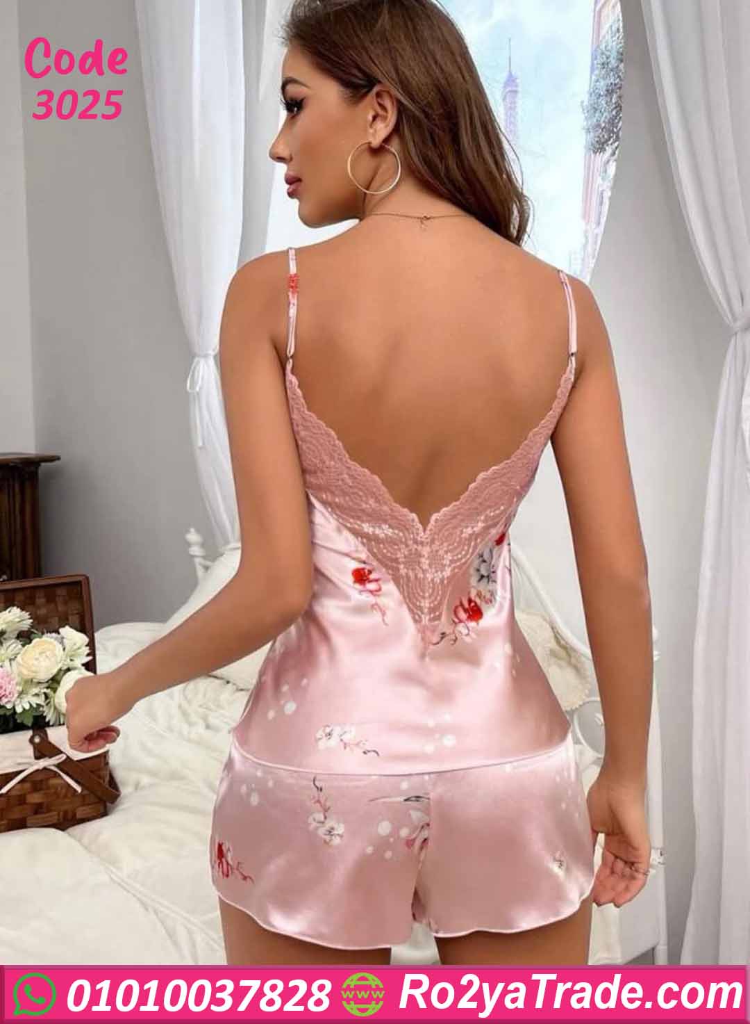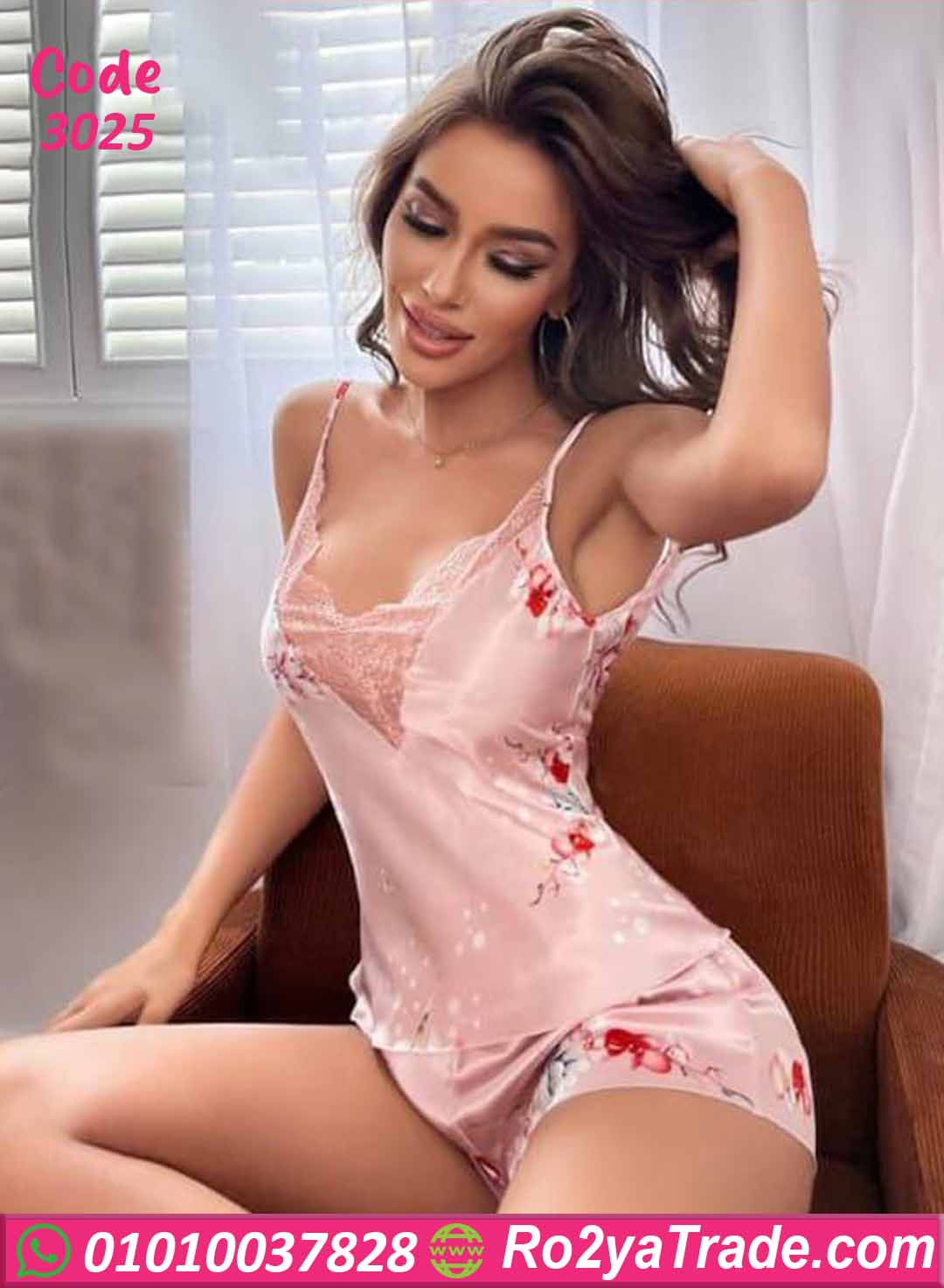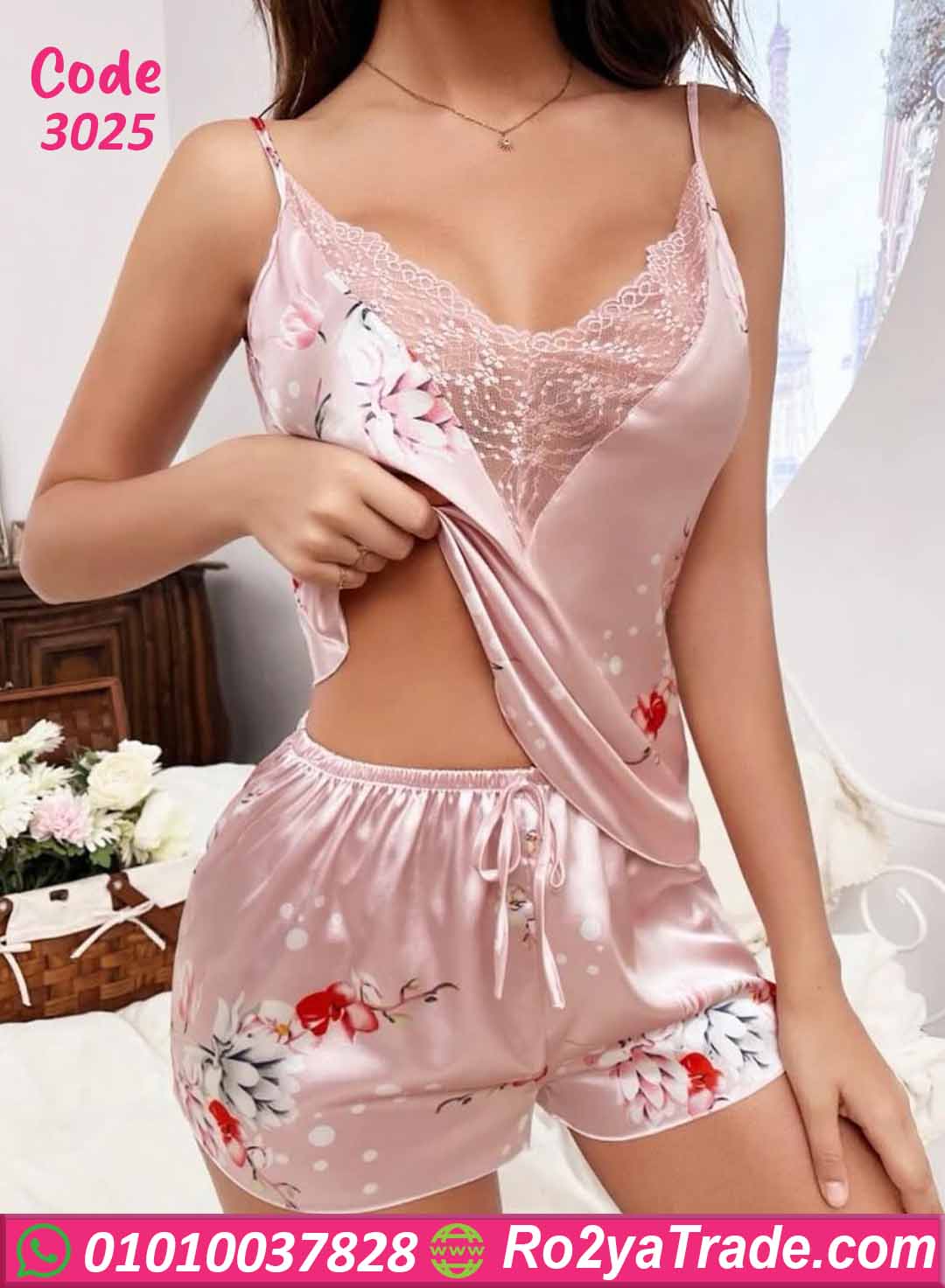 بيجامة هوت شورت حريمي ستان بدانتيل ناعم – كود 3025