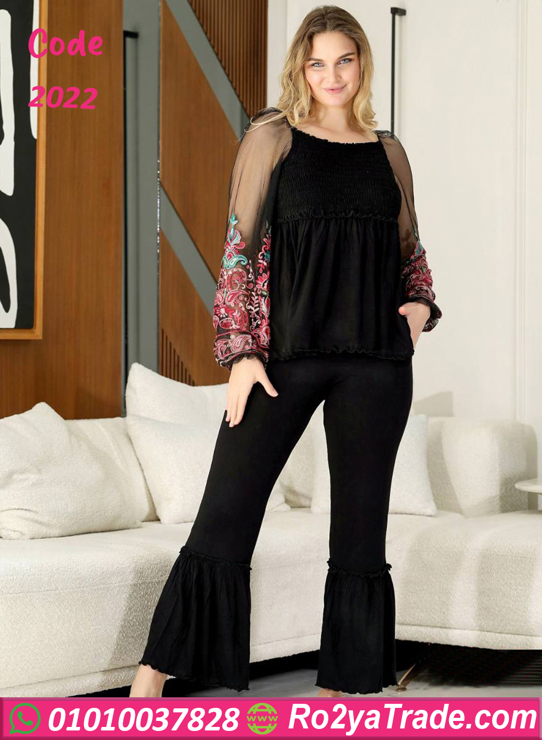 بيجامه حريمي للعرايس كم شفافه - كود 2022