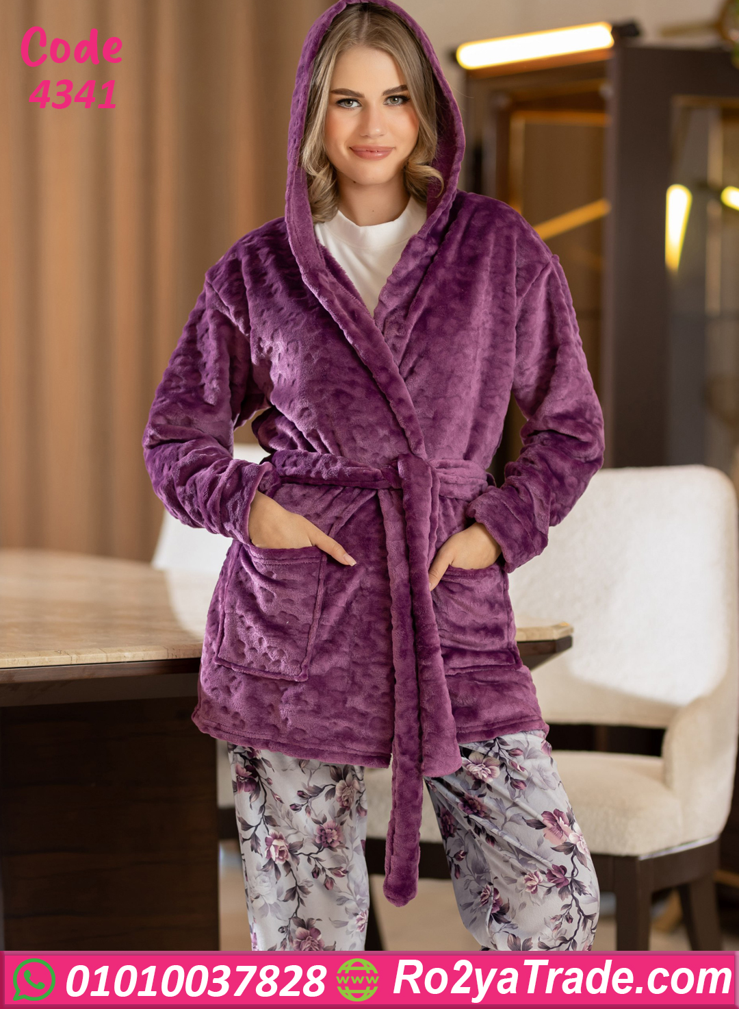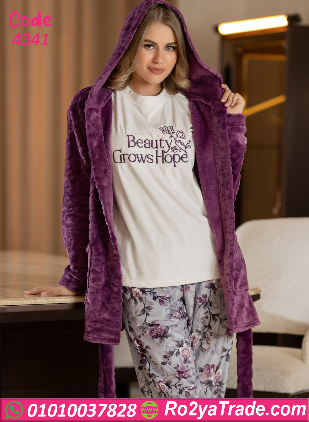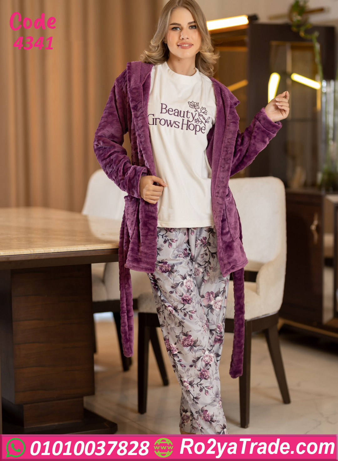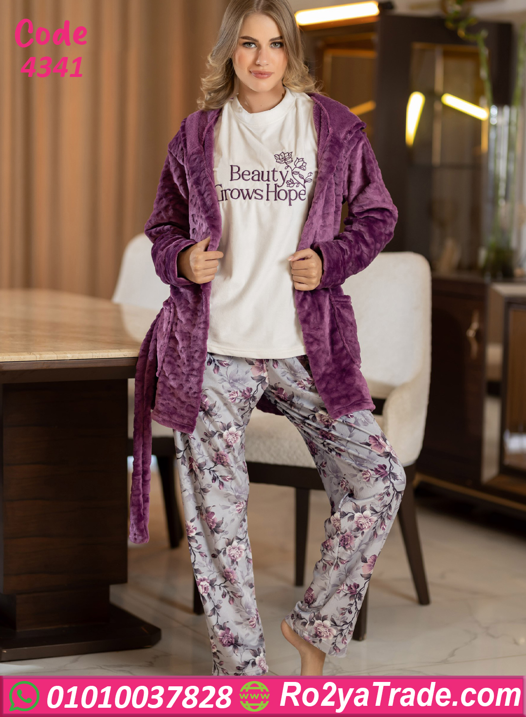 بيجامه شيك 3 قطع (توب + بنطلون + جاكيت فرو) خامة ناعمة جداً