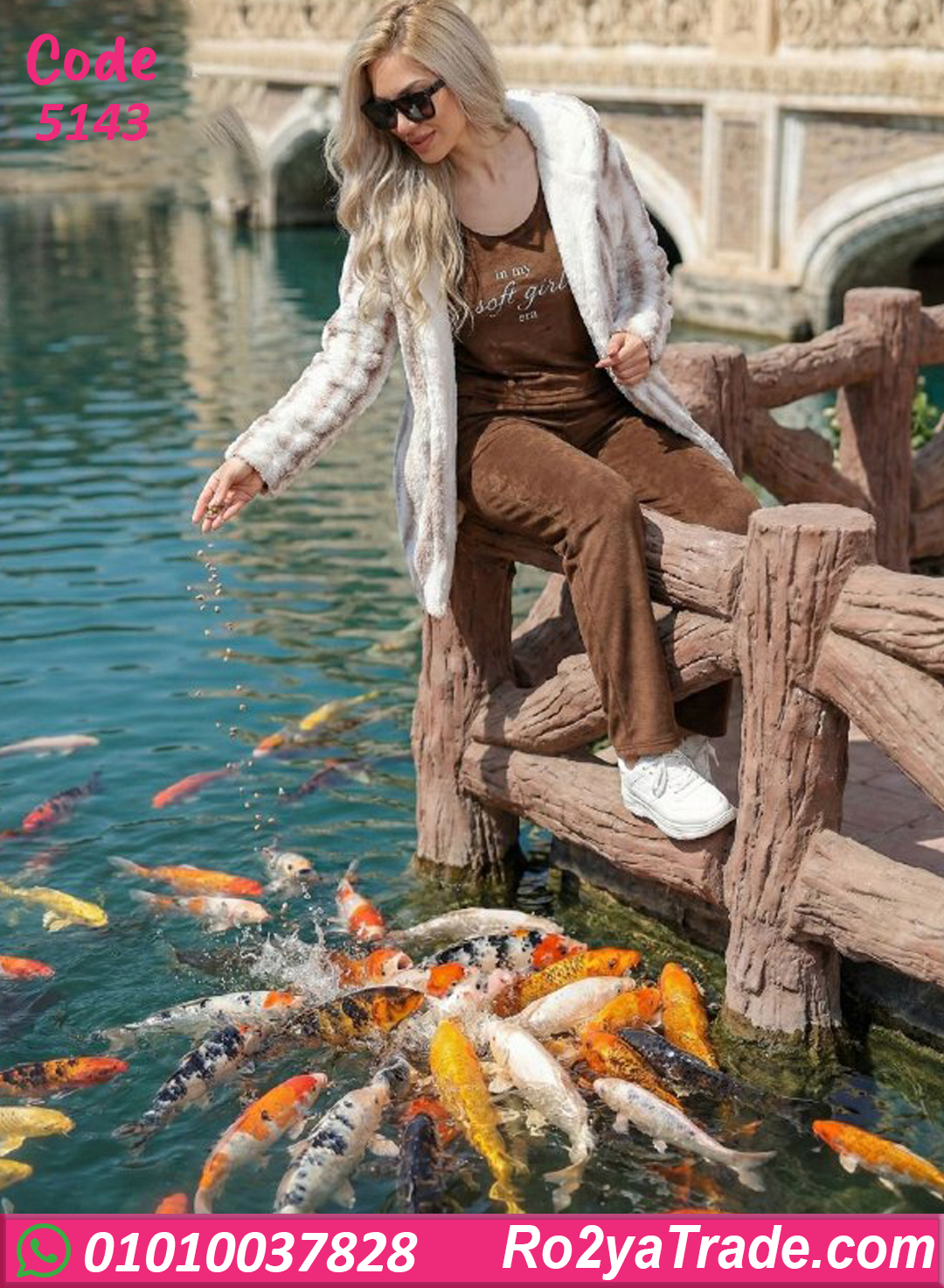 مكوّن من توب وبنطلون مع جاكيت فرو أنيق، خامة دافية ومريحة جدًا، مناسب للشتا والخروجات واللبس اليومي.