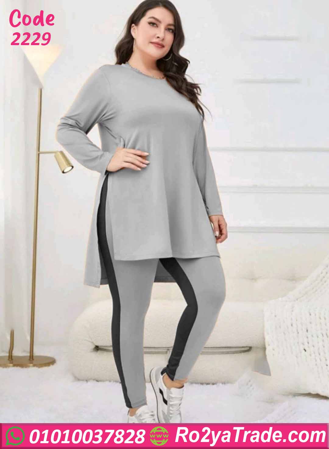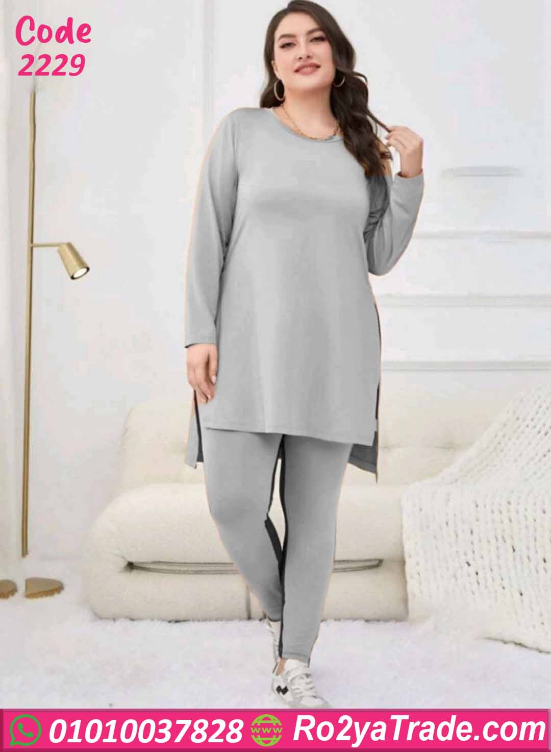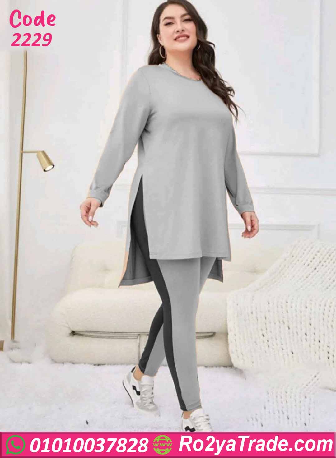 إلى ليجن رمادي بخط جانبي داكن يبرز شكل الطقم ويمنحه لمسة رياضية جذابة.
