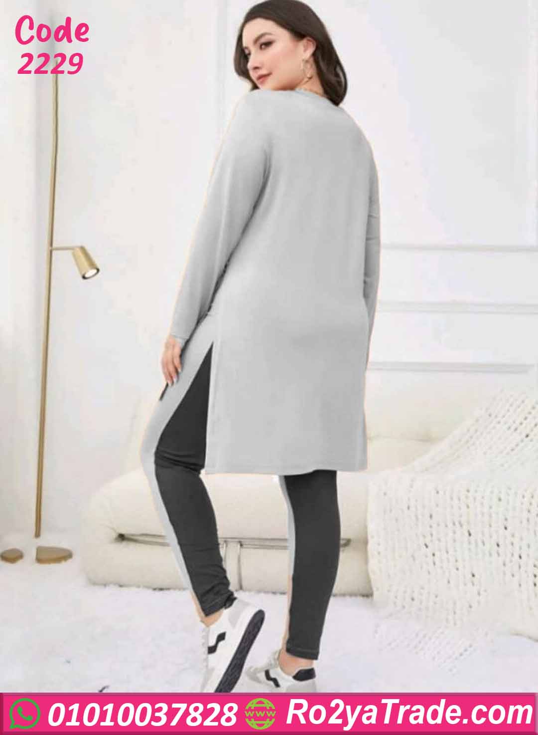 ترنج نسائي شتوي – كود 2229 من ماركة Lara بتصميم عصري مميز. يتكون من تونك رمادي