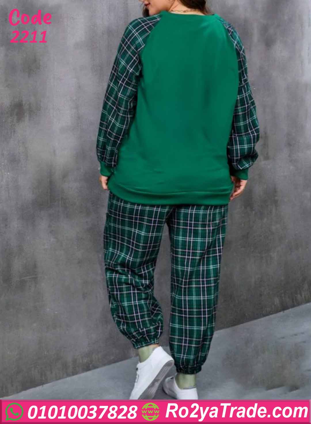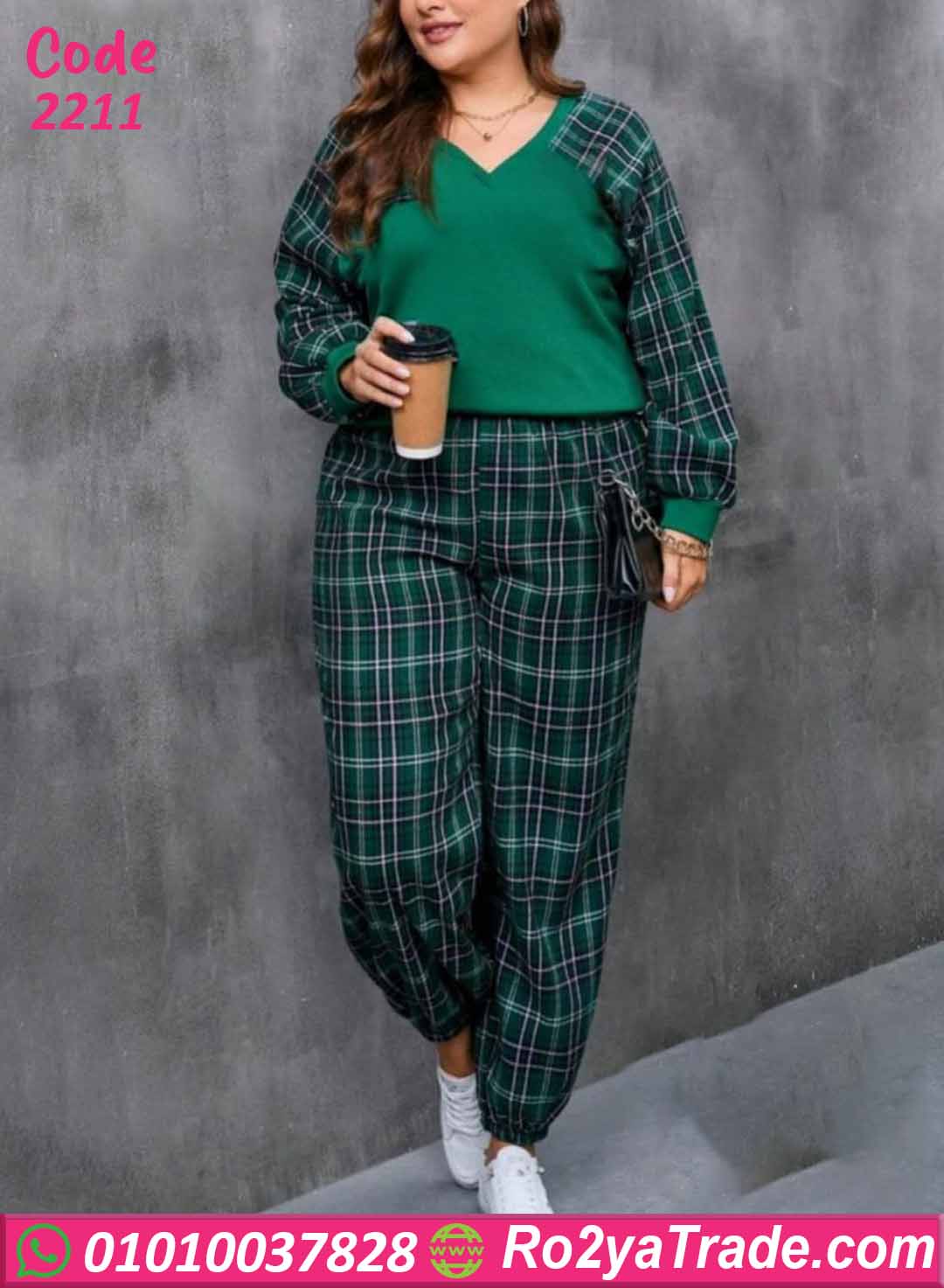 إلى بنطال كاروه أخضر بقصة مريحة واستايل شبابي جذاب. خامة شتوية ناعمة