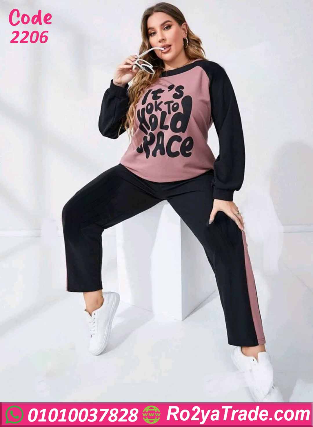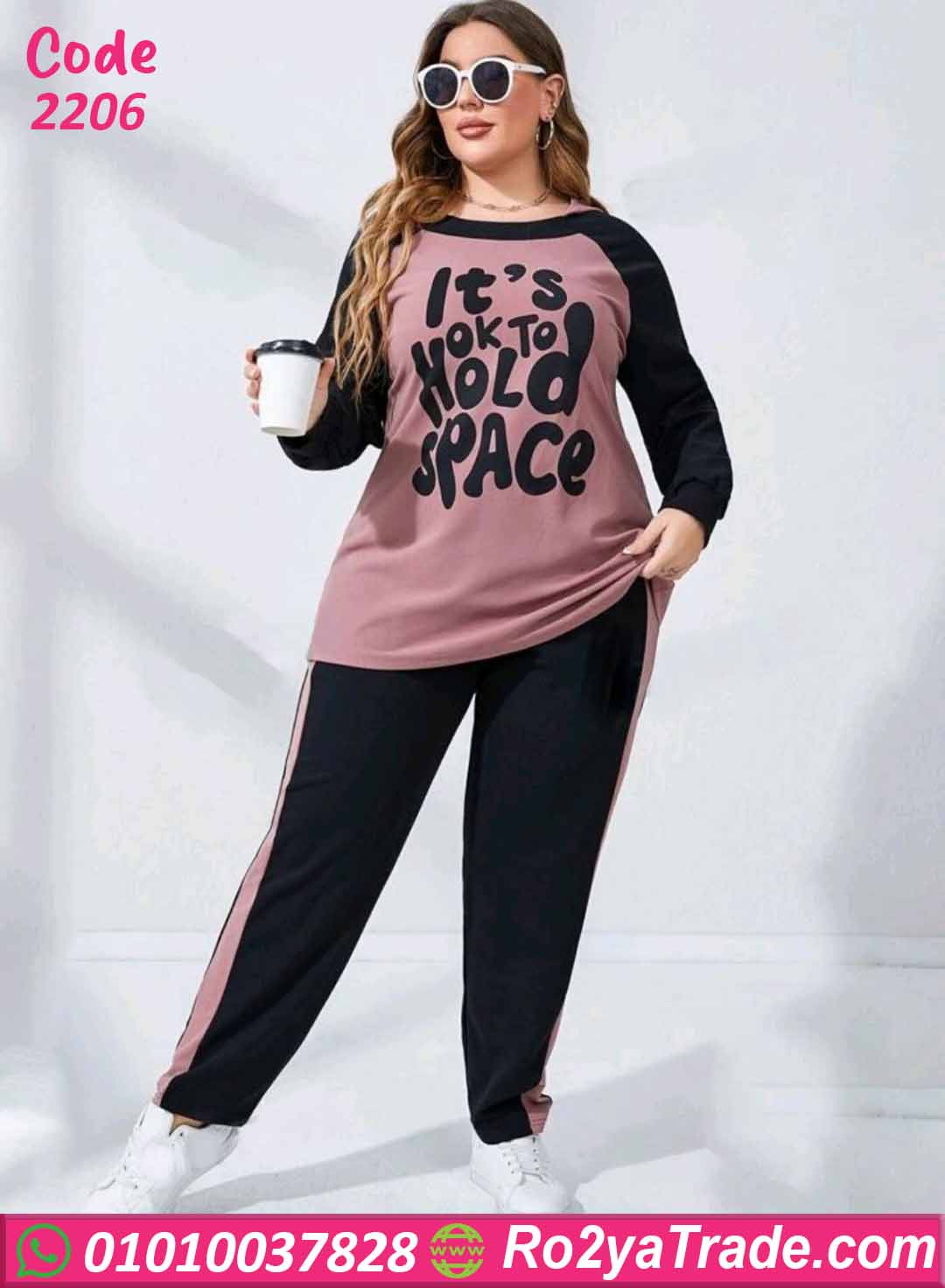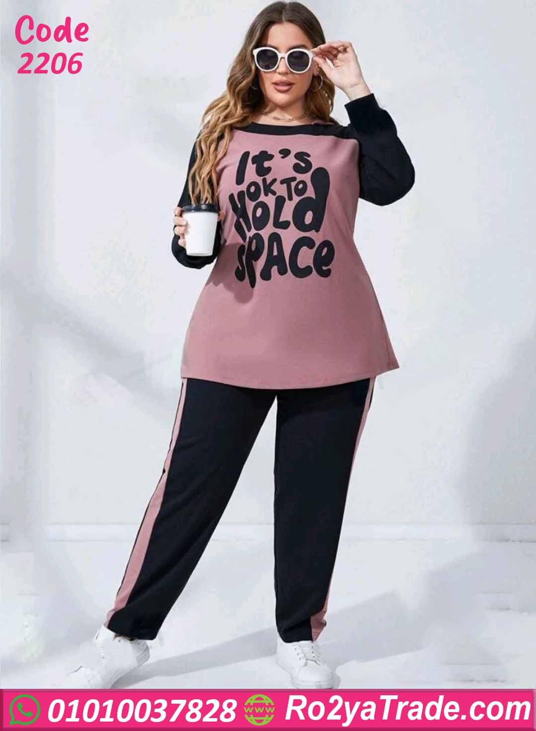 ترنج نسائي شتوي – كود 2206 من ماركة Lara بتصميم عملي مناسب للمقاسات الكبيرة. يتكون من تيشيرت