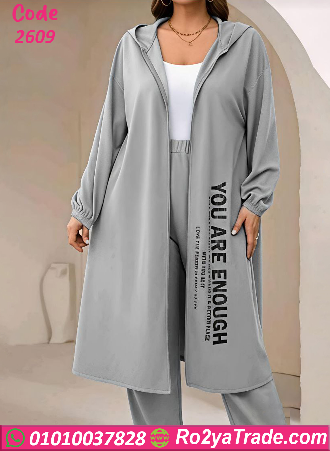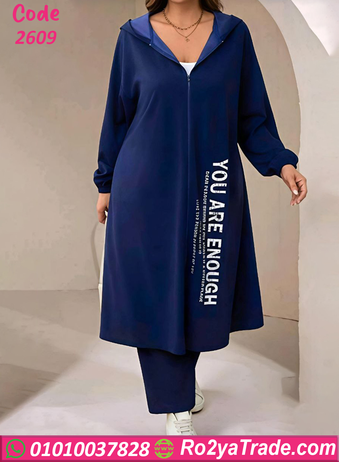 يتميز التونيك بتصميم طويل أنيق مع كابيشو وسوستة أمامية لسهولة اللبس، بالإضافة إلى قصة واسعة تعطي راحة في الاستخدام. كما أن التصميم العصري مع الكتابة الجانبية YOU ARE ENOUGH يضيف لمسة شبابية مميزة تجعل الترنج مناسب للبيت أو للخروجات الكاجوال اليومية.