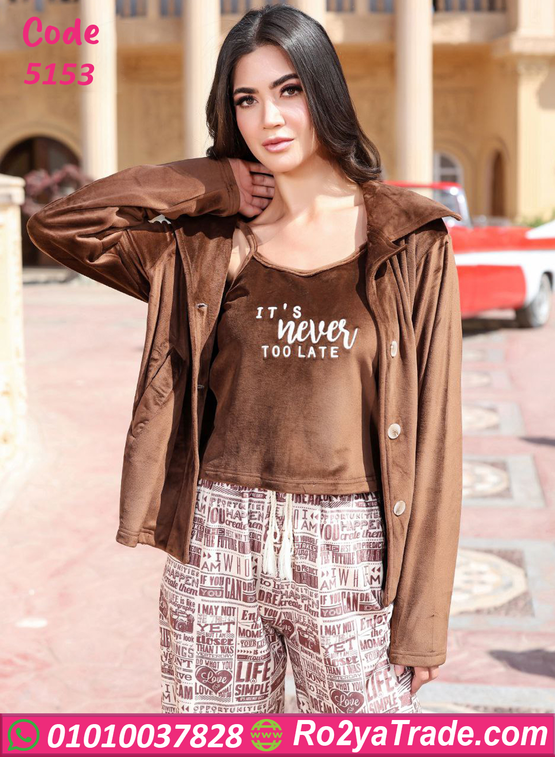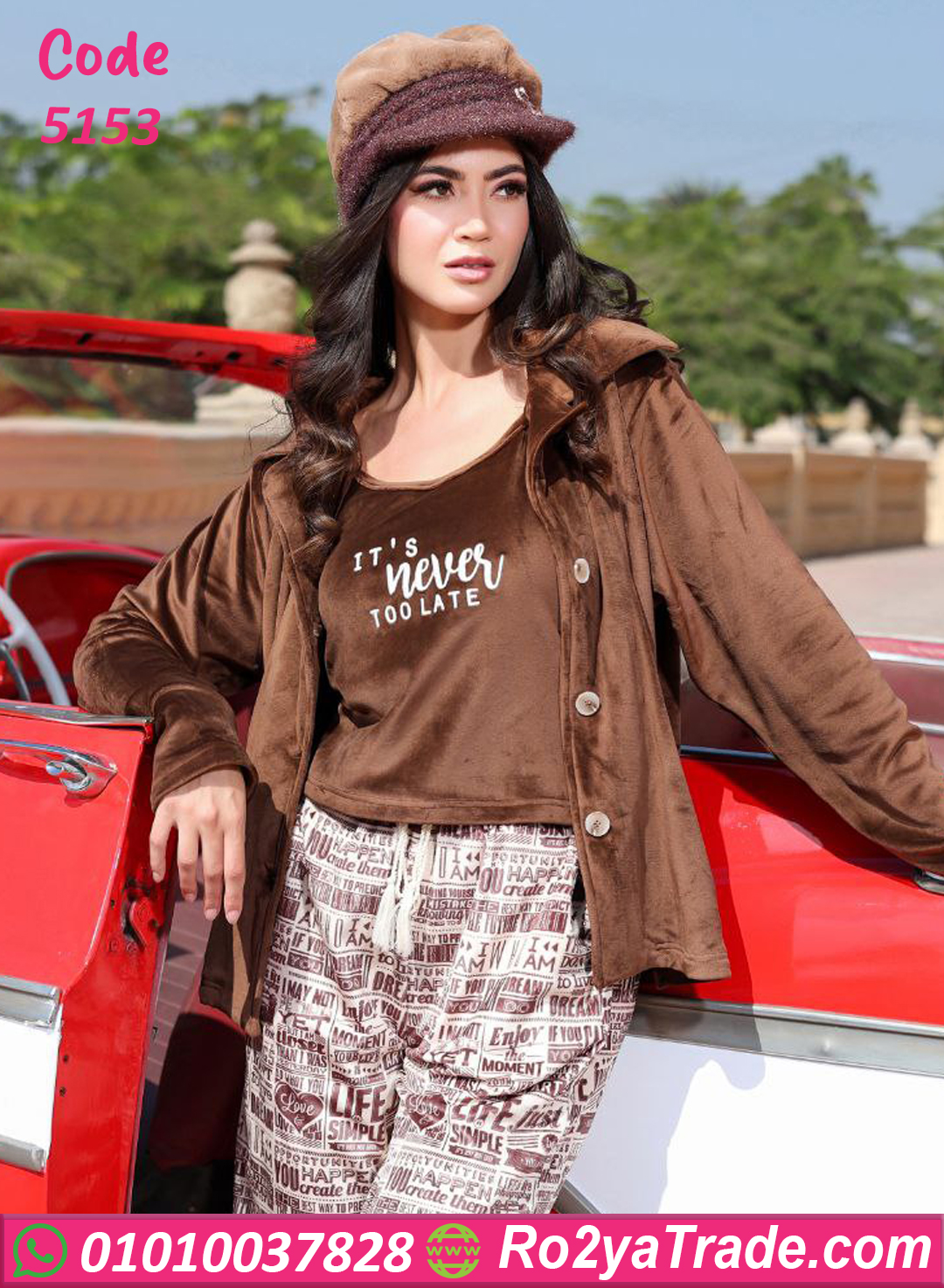 مكوّن من توب وبنطلون مع جاكيت خفيف، خامة ناعمة ودافية ومريحة، مناسب للشتا والخروجات واللبس اليومي.