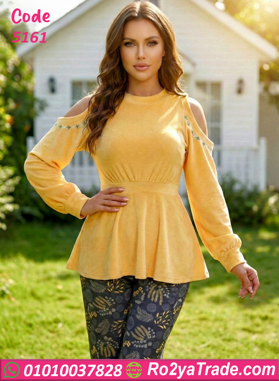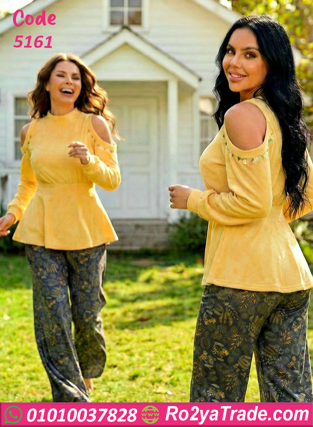 ترنج نسائي شتوي بخامة ناعمة وثابتة، التوب بتصميم أنيق مع فتحة كتف ولمسة تطريز بسيطة بتدي شكل أنثوي وراقي، والبنطلون مشجر بقَصة مريحة وشيك تناسب الحركة واللبس اليومي. الموديل عملي جدًا ومناسب للبيت والخروج، تشطيب ممتاز وخامة ثابتة مع الاستخدام.