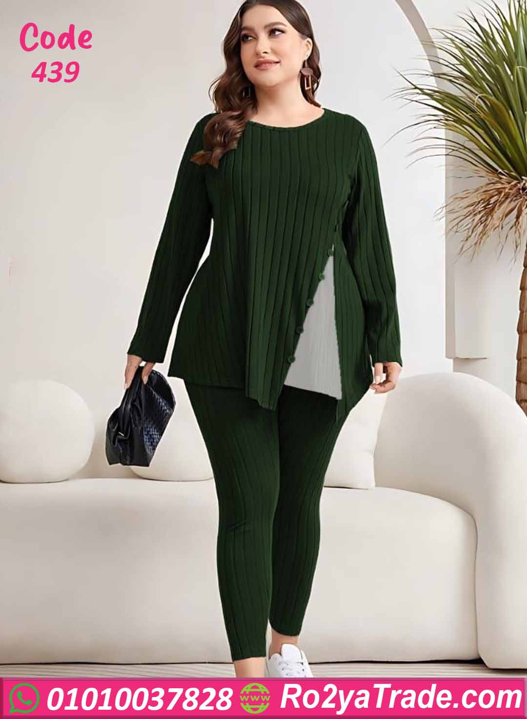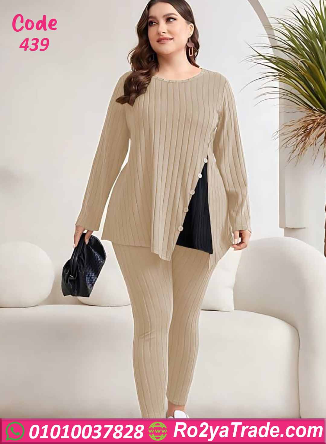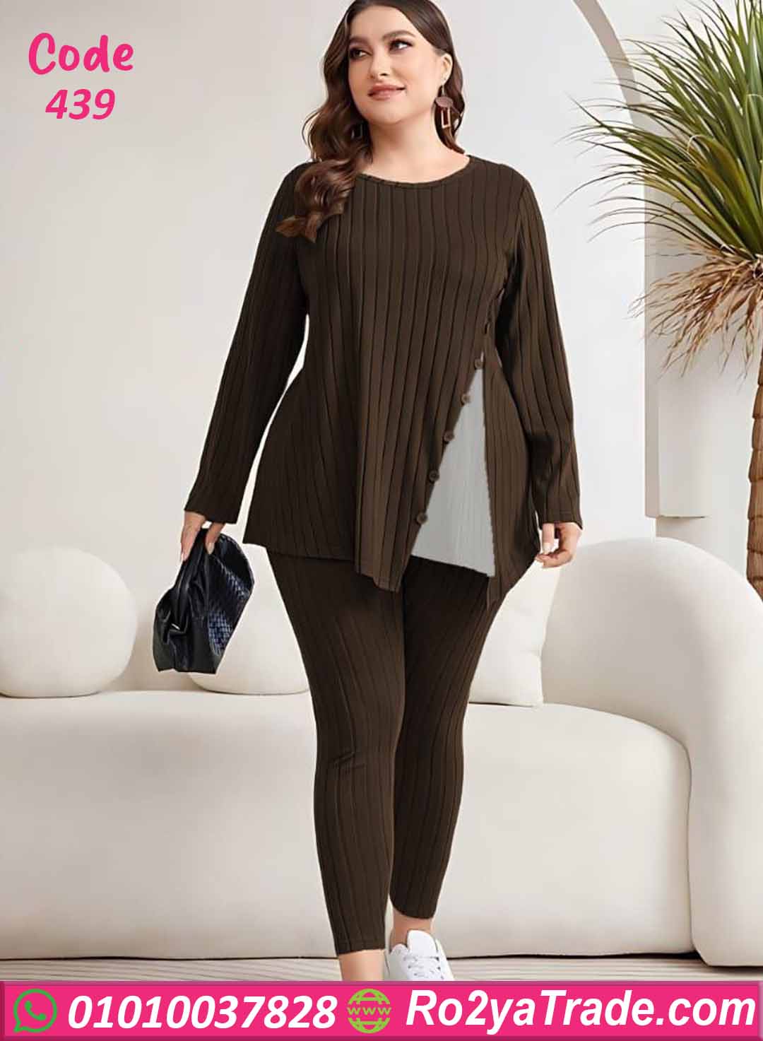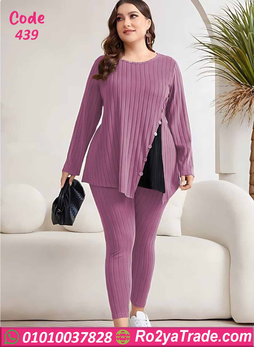 ترنج كود 439 من ماركة Big Ladies بتصميم عصري مميز، حيث يأتي ببلوزة طويلة بقصة جانبية أنيقة مزينة بأزرار تضيف لمسة جذابة ومختلفة.