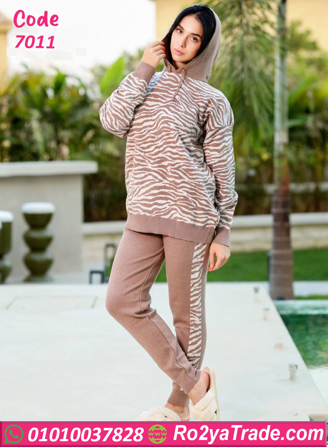 ترنج شتوي حريمي تريكو ناعم بخامة دافئة ومريحة جدا، تصميم عصري بنقشة الزيبرا المميزة، يناسب الشتاء والخروج اليومي