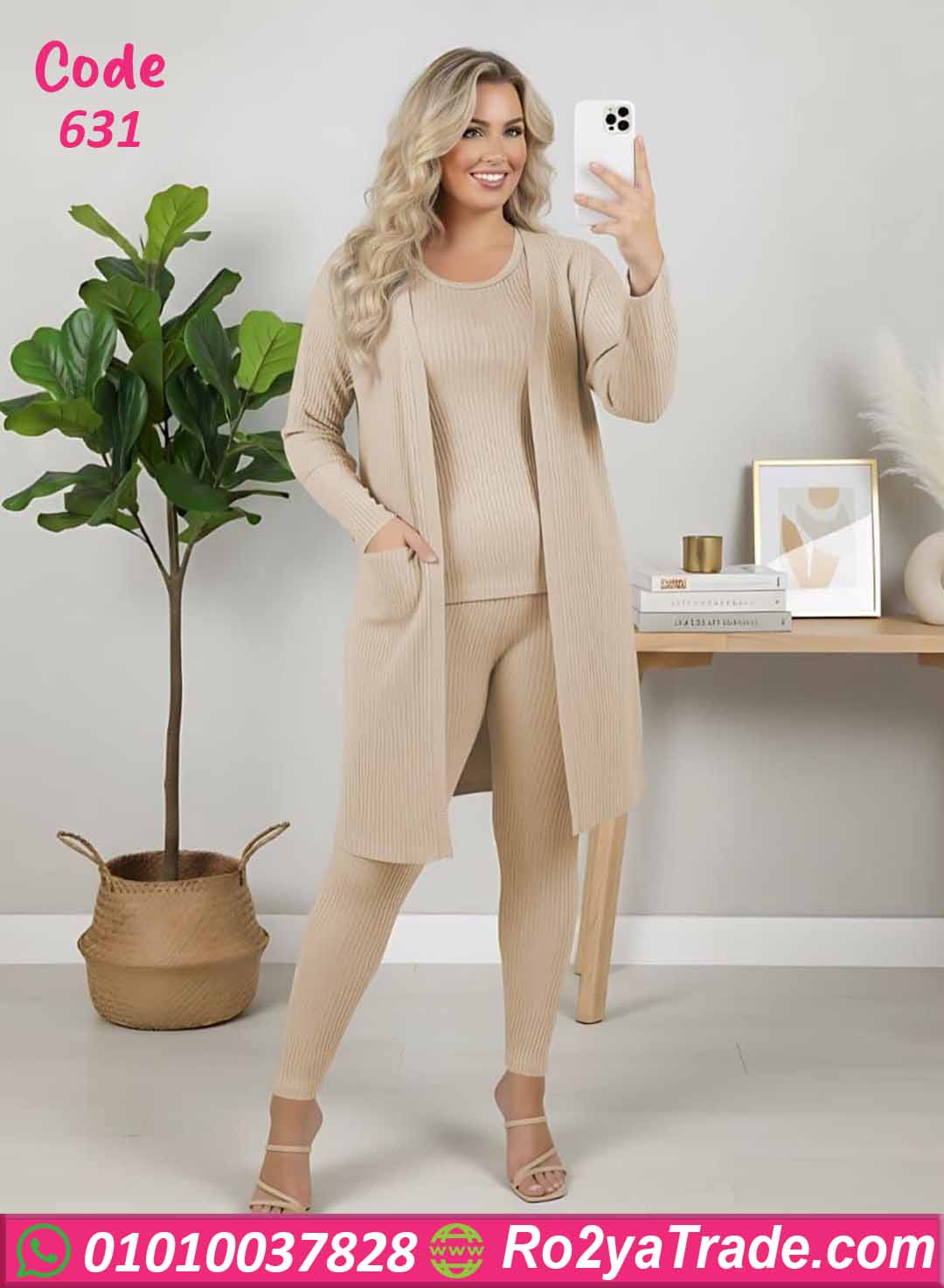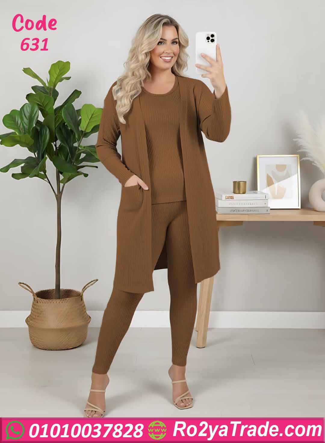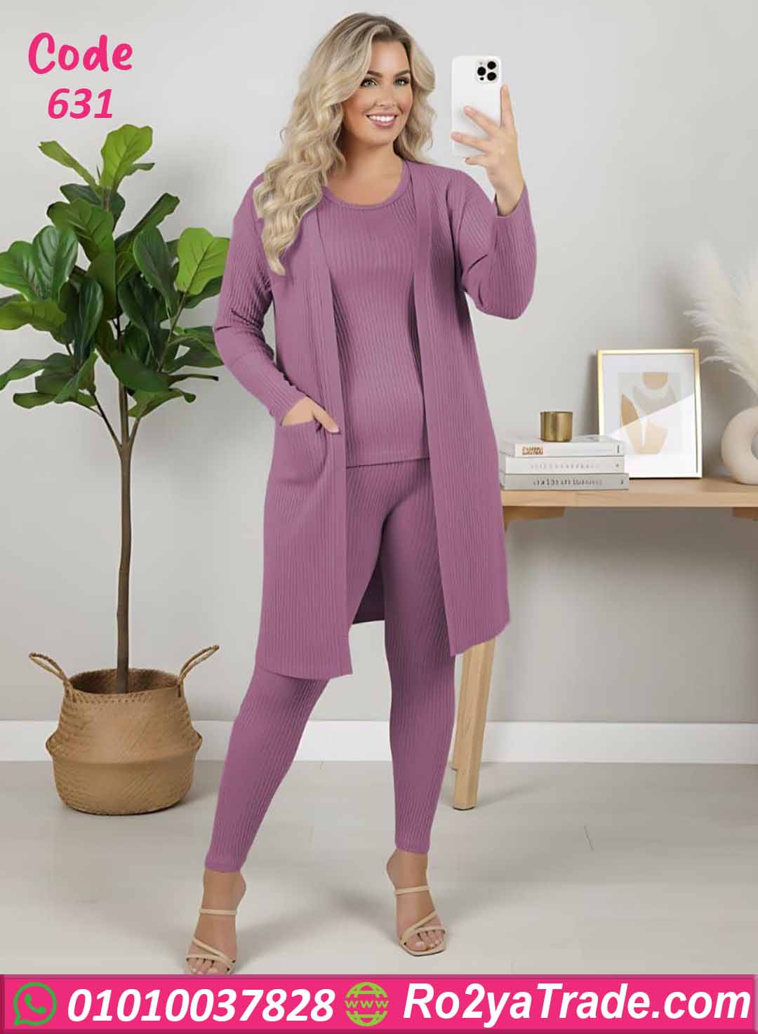 ترنج شتوي حريمي شيك مكون من 3 قطع (كارديجان طويل + بلوزة + ليجن)، تصميم أنيق ومريح مناسب للخروجات الخفيفة أو اللبس اليومي. خامة مضلعة دافئة وناعمة على البشرة تعطيكي راحة وأناقة في نفس الوقت.