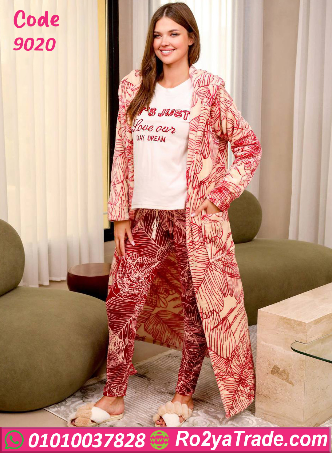 ترنج شتوي 3 قطع بخامة قطيفة سوفت دافييية جدًا بتصميم مودرن شيك.