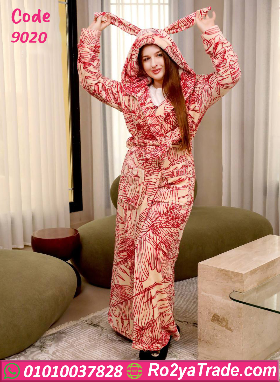 الروب هو بطل اللوك! تصميم طويل لحد تحت الركبة بخامة قطيفة سوفت ناعمة جدًا على الجسم،