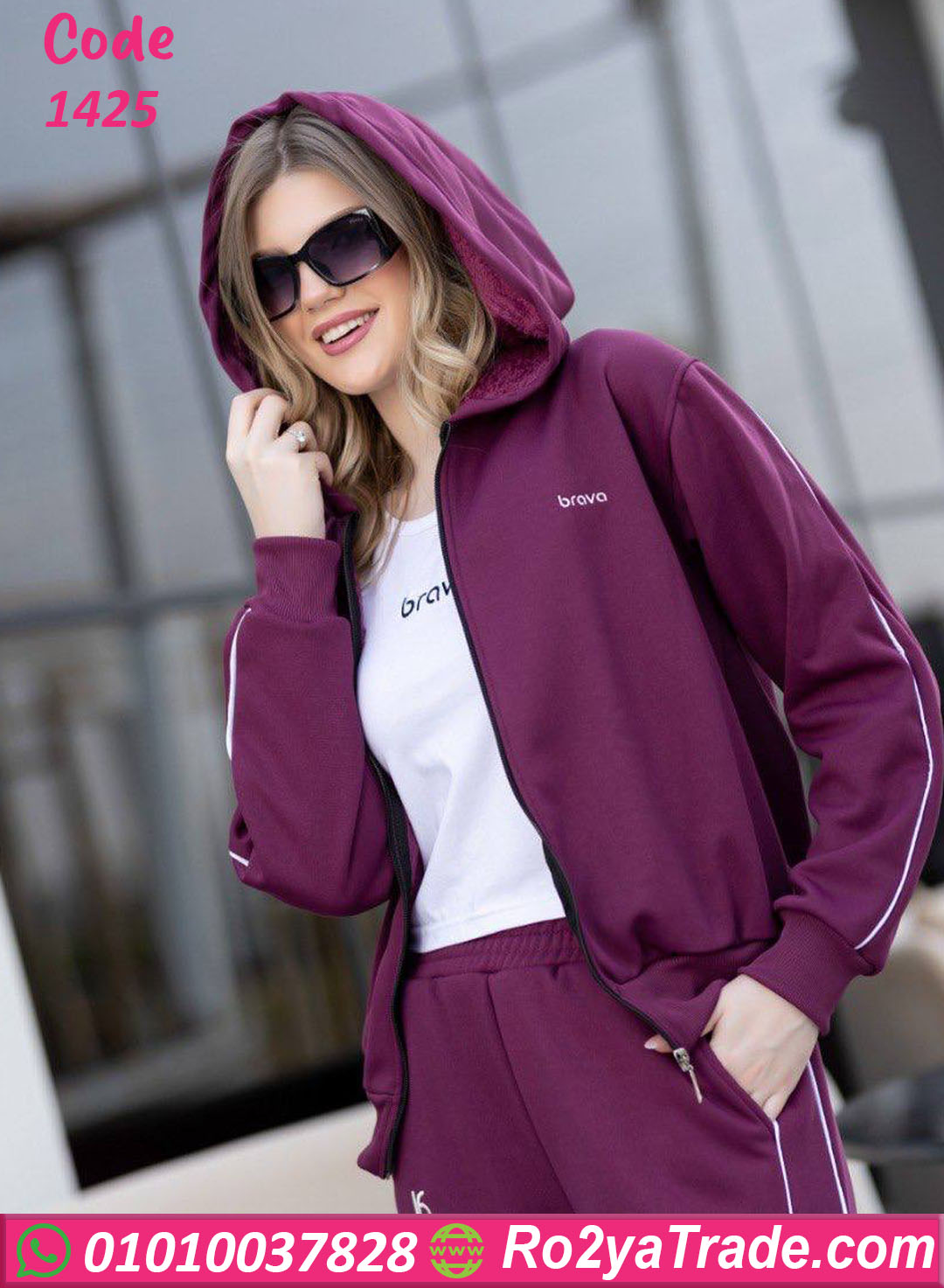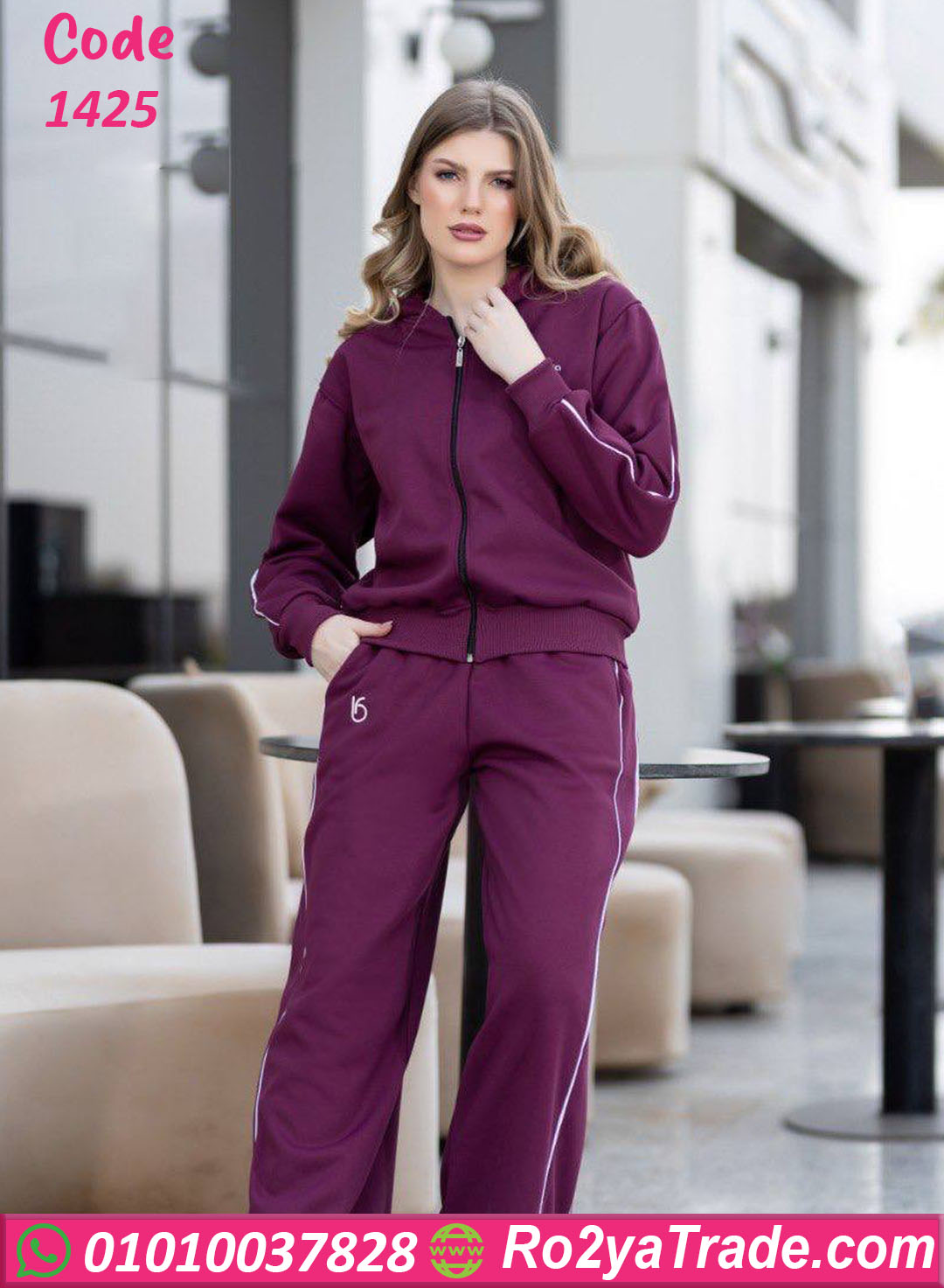 جاكيت بسوستة كاملة وبنطلون واسع بقصة مريحة، وده بيخلّيه مناسب للاستخدام اليومي سواء في البيت أو المشاوير أو الخروجات الخفيفة.