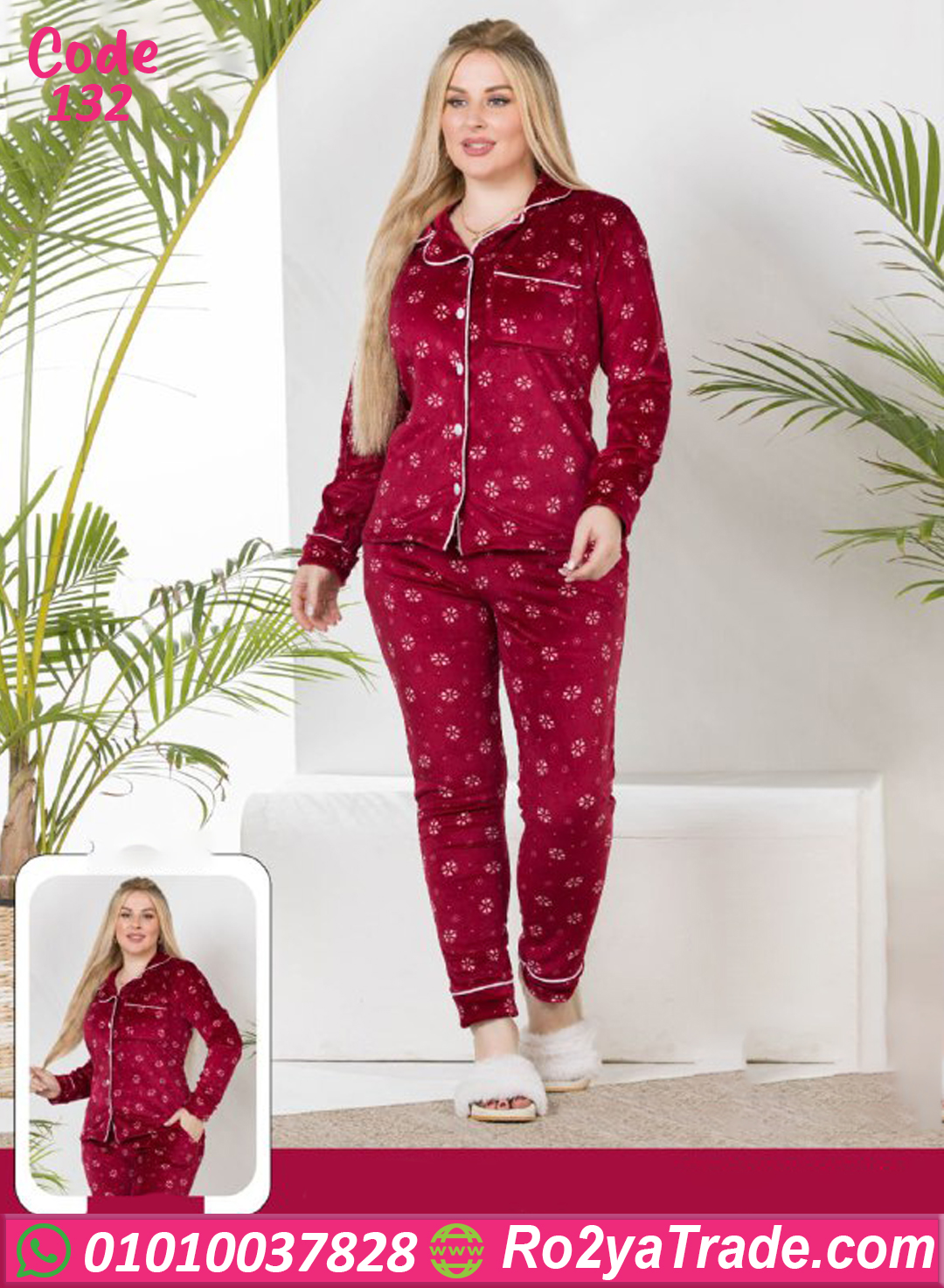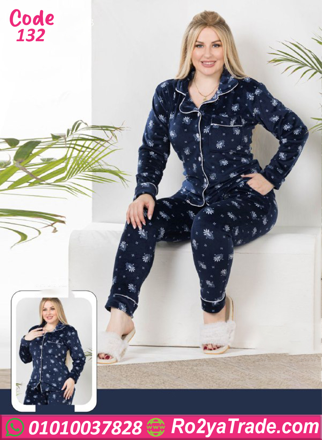 الترنج الشتوي دا من أجمل القطع اللي ممكن تلبسيها في الشتاء! تصميم بسيط وشيك جدًا بالخامة الفرو الناعمة اللي بتدي إحساس دفا وراحة طول اليوم. الجزء العلوي بياخد شكل البيچامة الكلاسيكية بزرار أمامي وخياطة بارزة باللون الأبيض، والبنطلون بنفس النقشة المميزة اللي بتدي شكل متناسق وأنيق.