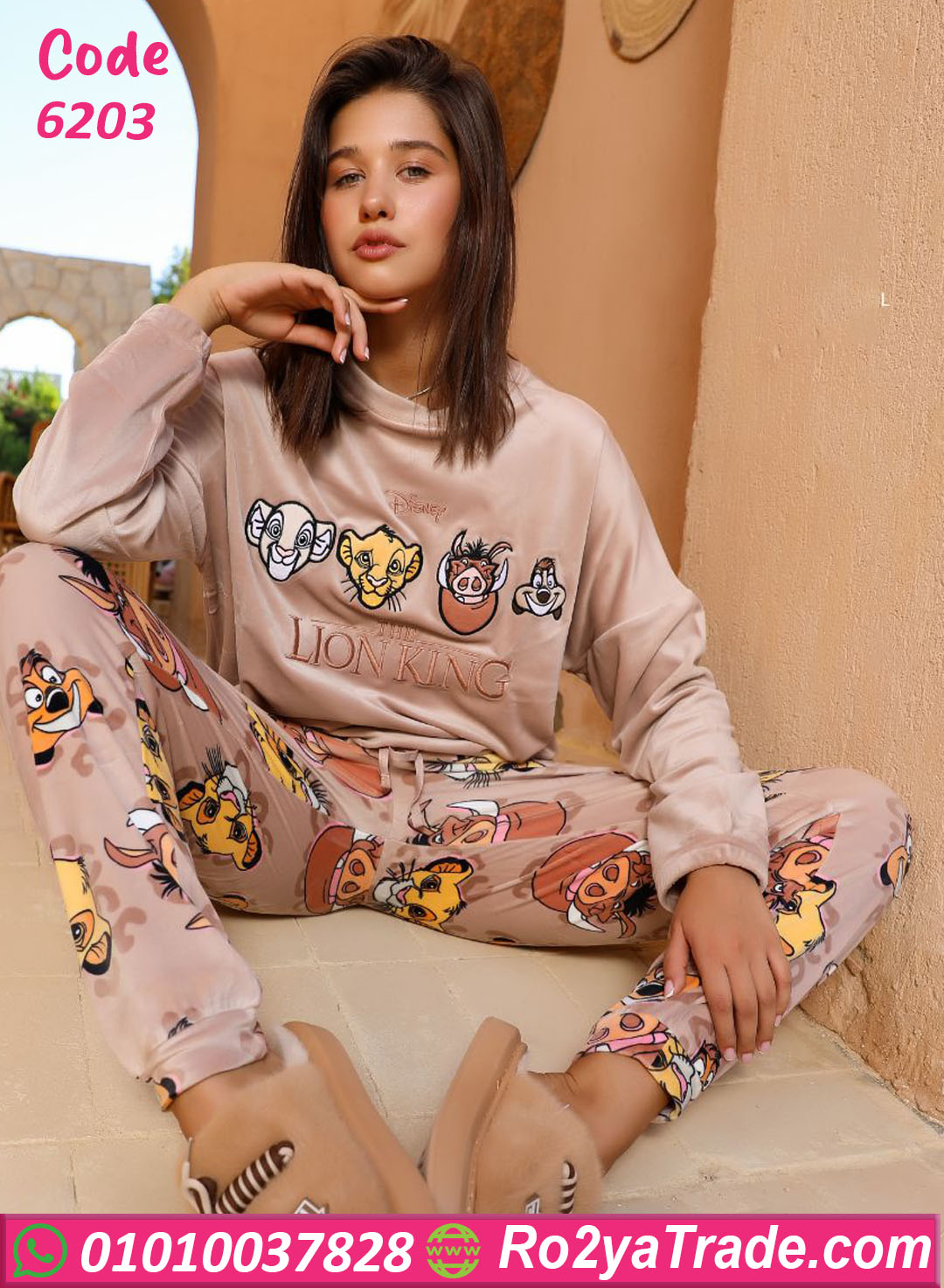 دلّعي نفسك بالترنج الشتوي الأنيق من ماركة SMILE اللي بيجمع بين الراحة والأناقة بخامته القطيفة الفاخرة اللي بتدي دفا وسُتر في نفس الوقت. التيشيرت بلون بيچ ناعم ومزين بتطريز لشخصيات لايون كينج الشهيرة بشكل كيوت وجذاب، والبنطلون بنفس الرسومات اللي بتكمل اللوك بشكل لطيف جدًا. الموديل عملي جدًا ومناسب للبيت وأوقات الاسترخاء، خامة مريحة على البشرة وما بتكشّش ولا بتبهت مع الغسيل.