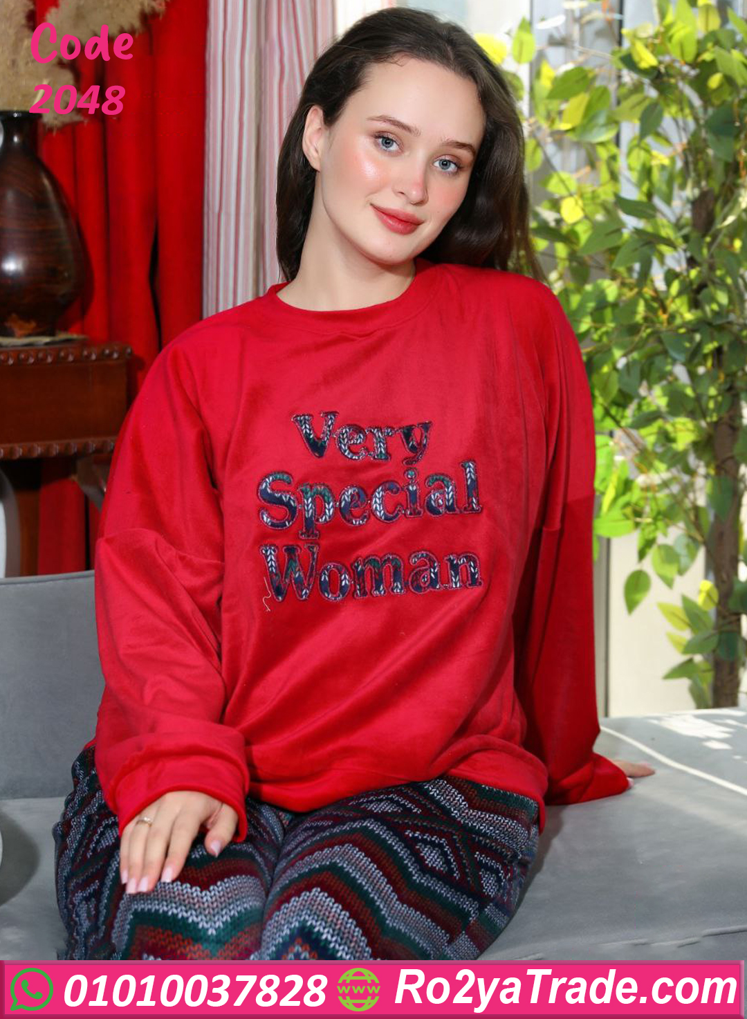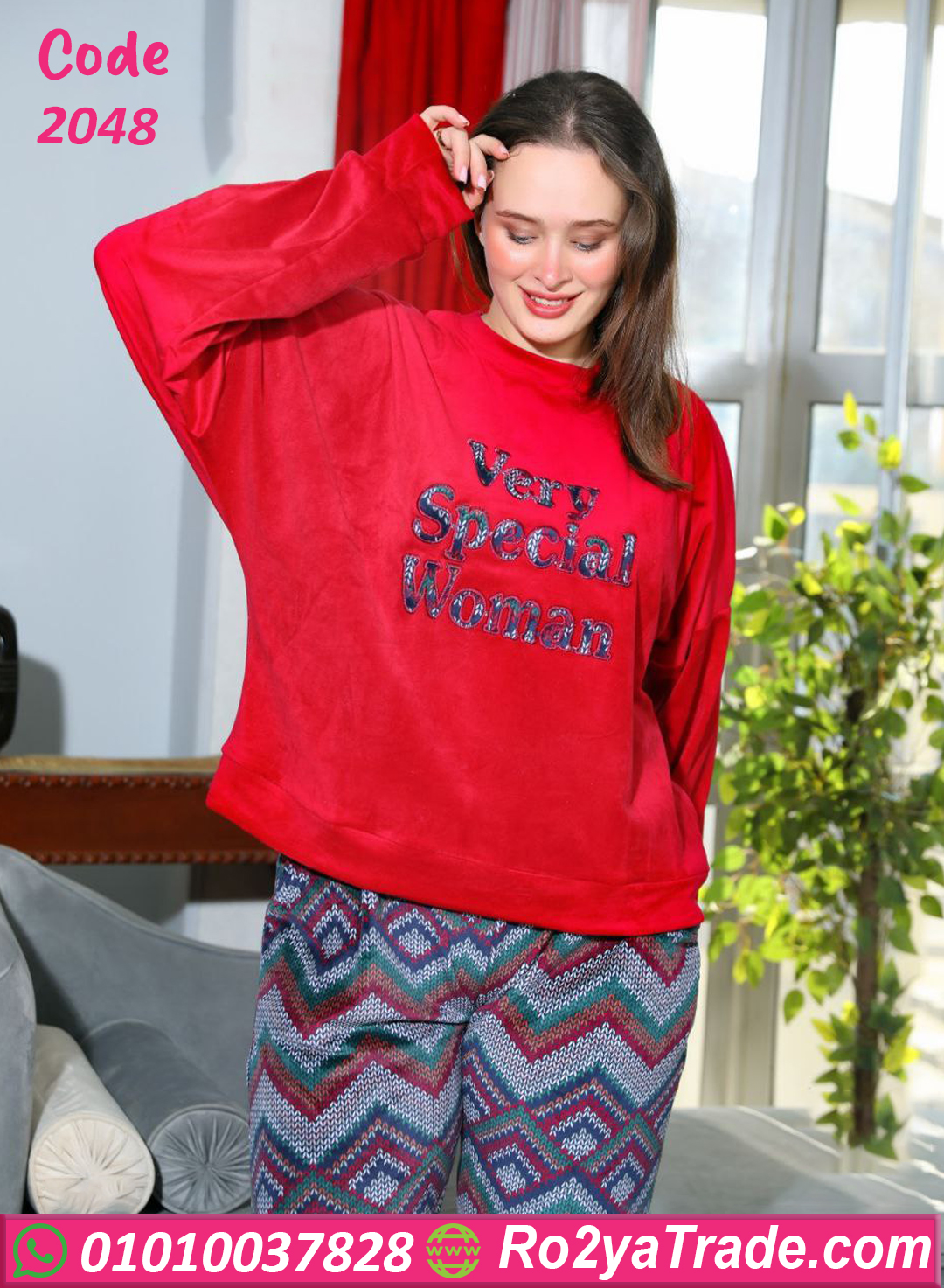 موديل 2048 من القطع اللي هتديكي أناقة وفي نفس الوقت دفا وراحة طول اليوم. الخامة قطيفة طرية وناعمة على الجسم، واللون الأحمر ملفت وجذاب جدًا 😍