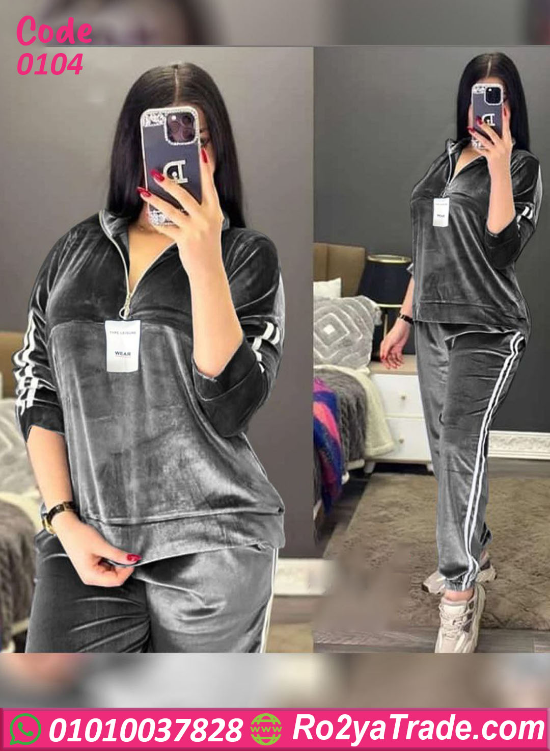 طقم ترنج حريمي شتوي بخامة قطيفة ناعمة ودافية، تصميم رياضي شيك ومريح للاستخدام اليومي في البيت أو الخروجات السريعة، مناسب للشتا ولمحبي اللوك العملي والكاجوال.