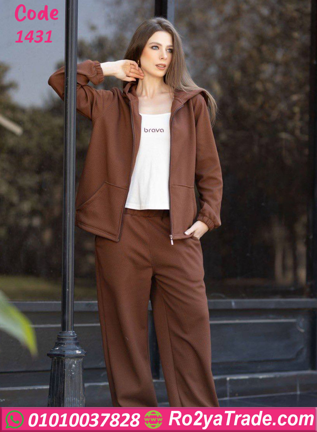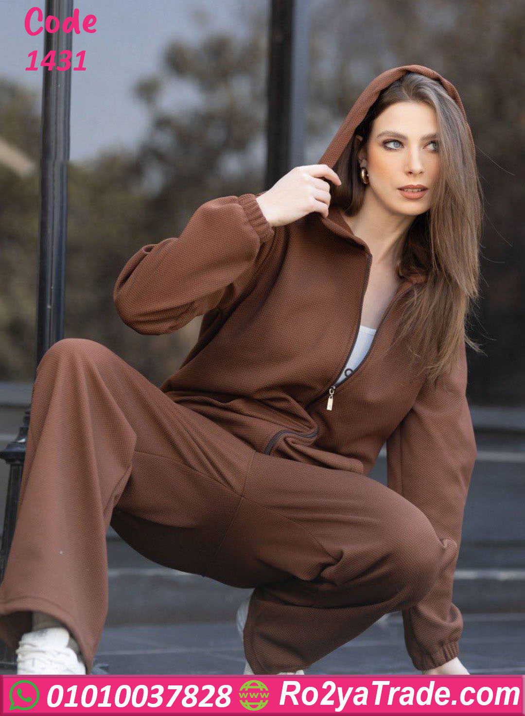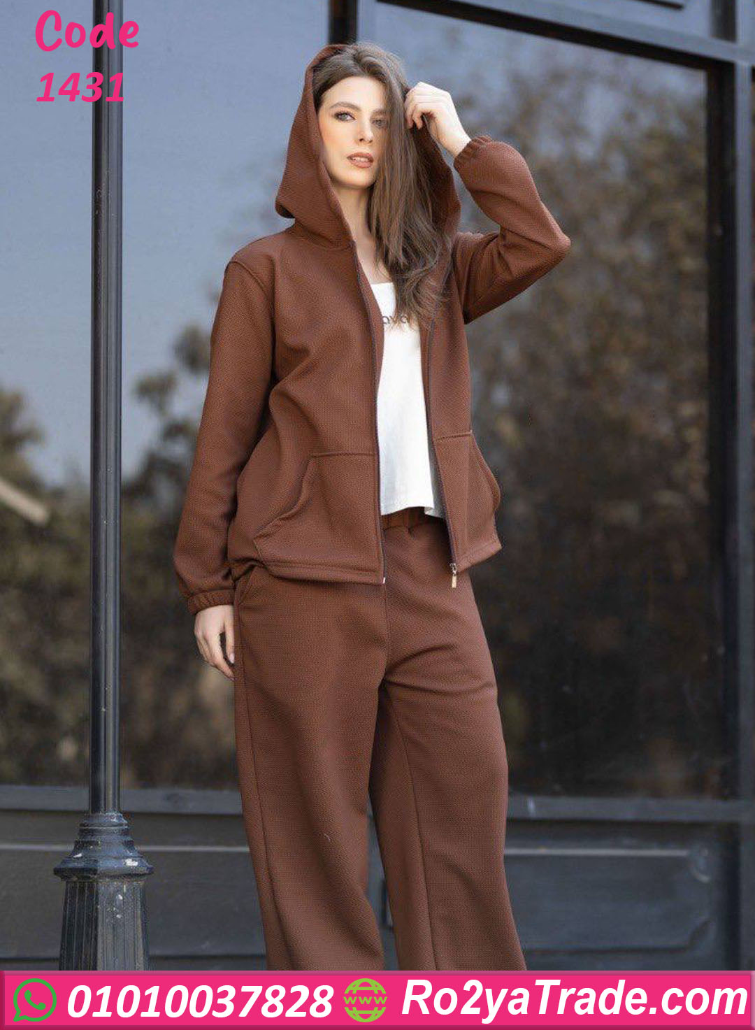 الترنج مكوّن من قطعتين؛ جاكيت بسوستة كاملة وكابيشو، وبنطلون مريح بقصة واسعة، وده بيخليه مناسب جدًا لفصل الشتاء والاستخدام اليومي.