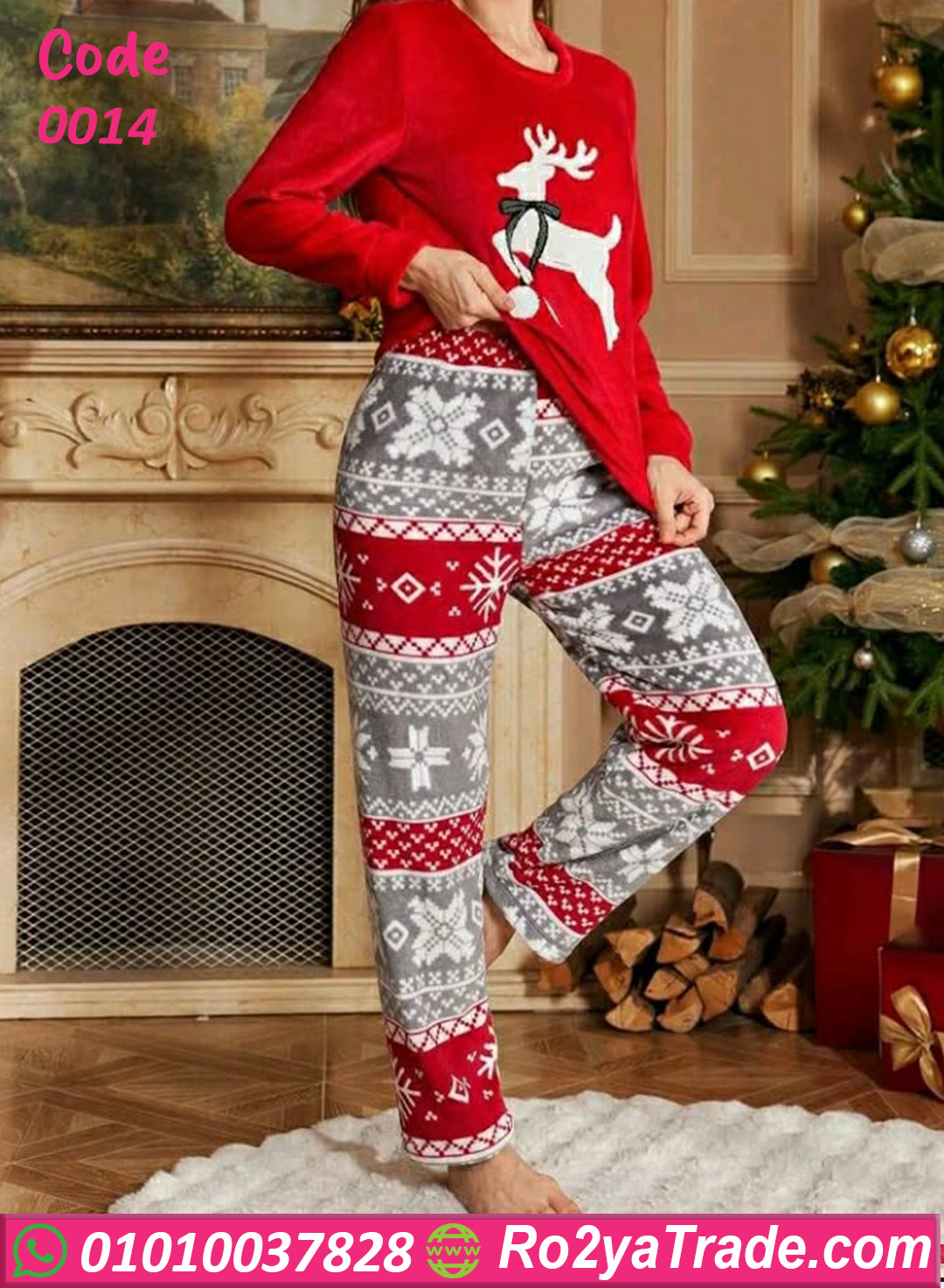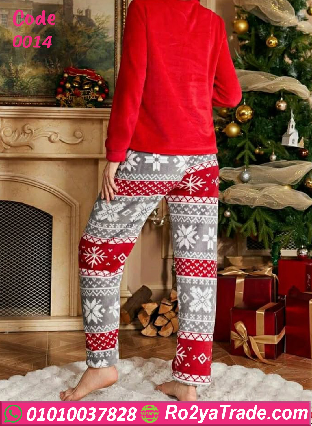 وبنطلون بنقشة كريسماس مميزة بالألوان الرمادي والأحمر بتدي إحساس بالبهجة والأجواء الشتوية 🎄