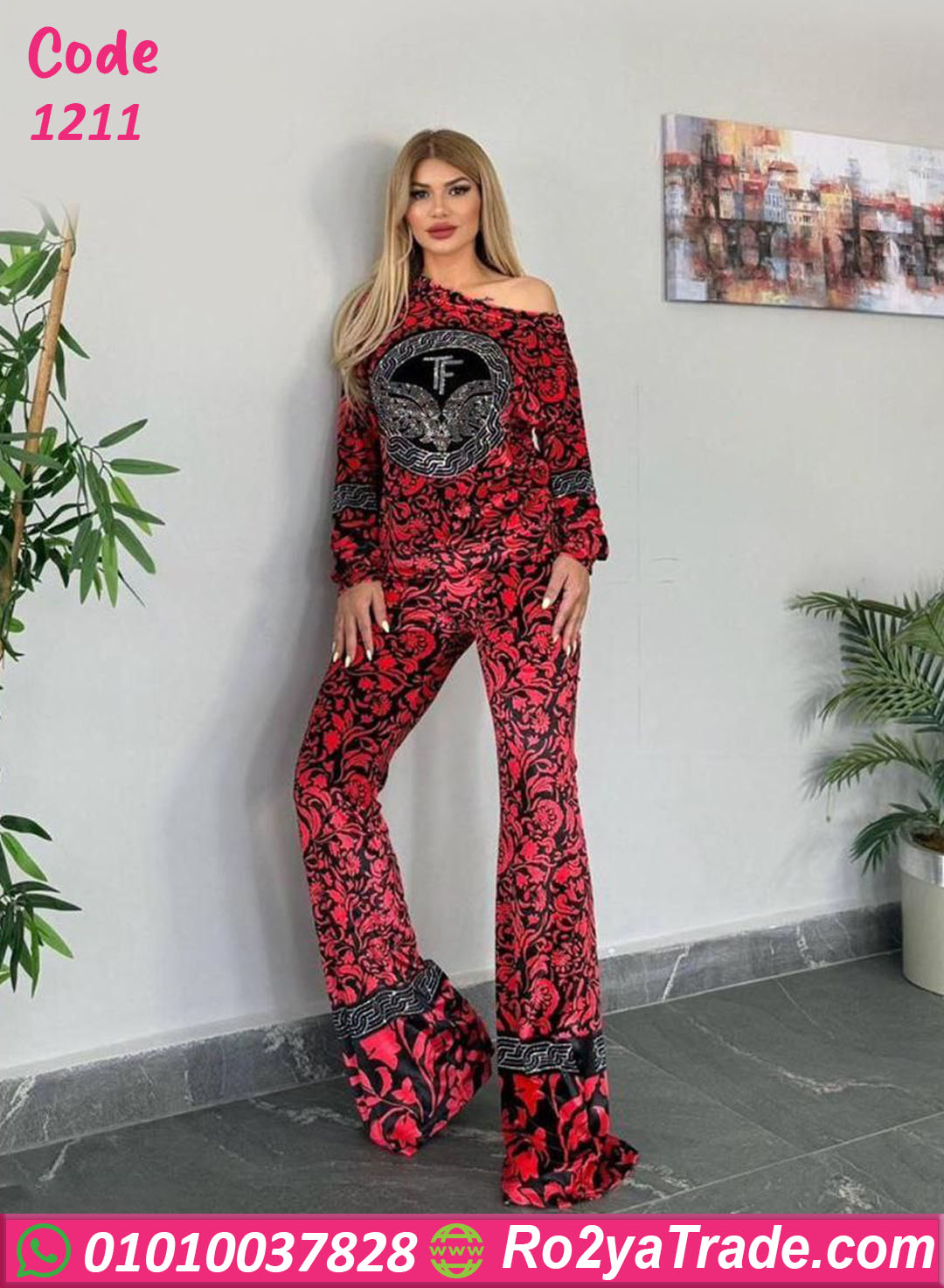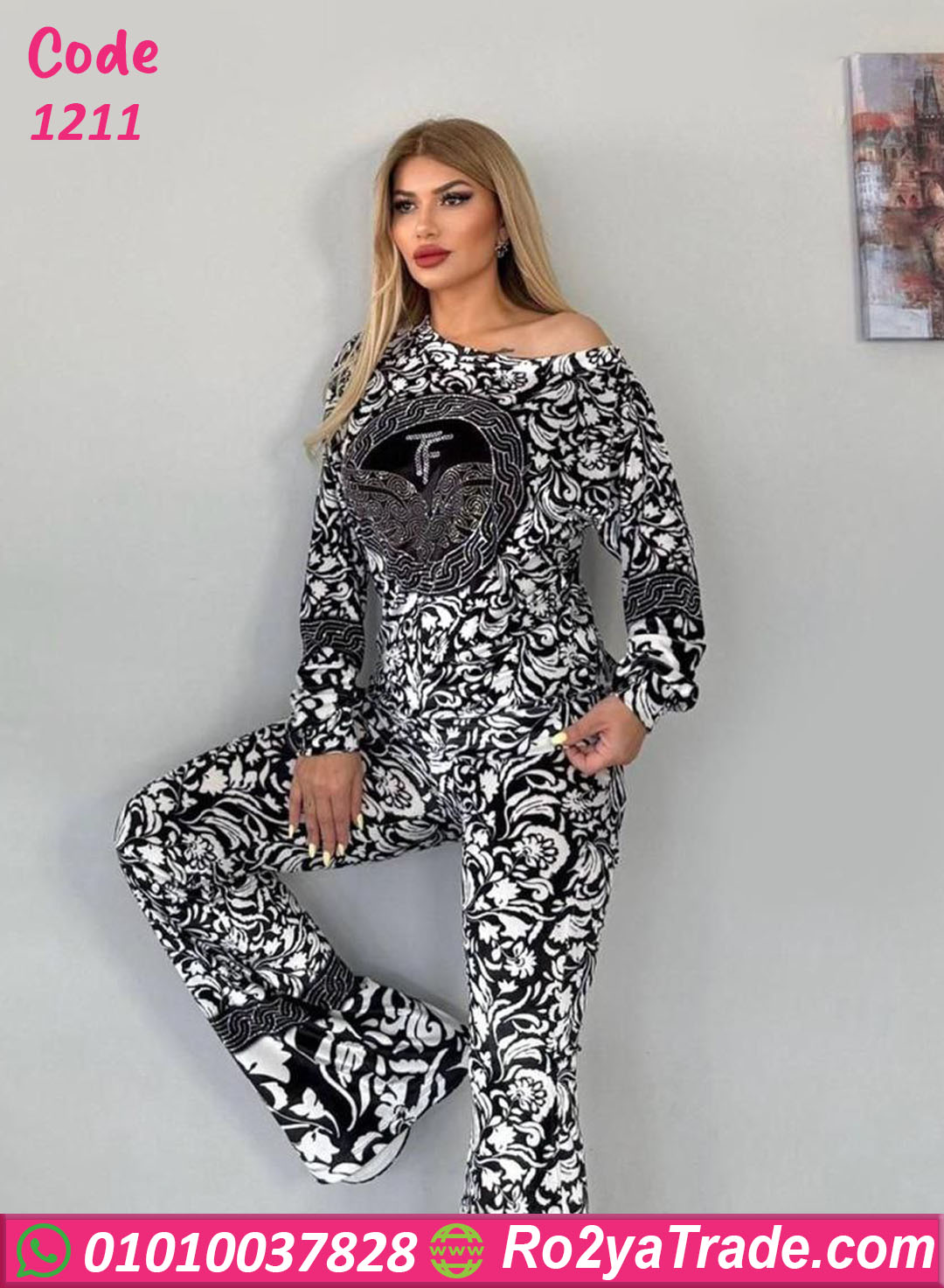 الترنج تصميمه شيك بأكمام طويلة وبنطلون واسع خفيف في اللبس، بنقشة مميزة بتدي لمسة فخامة وأناقة.