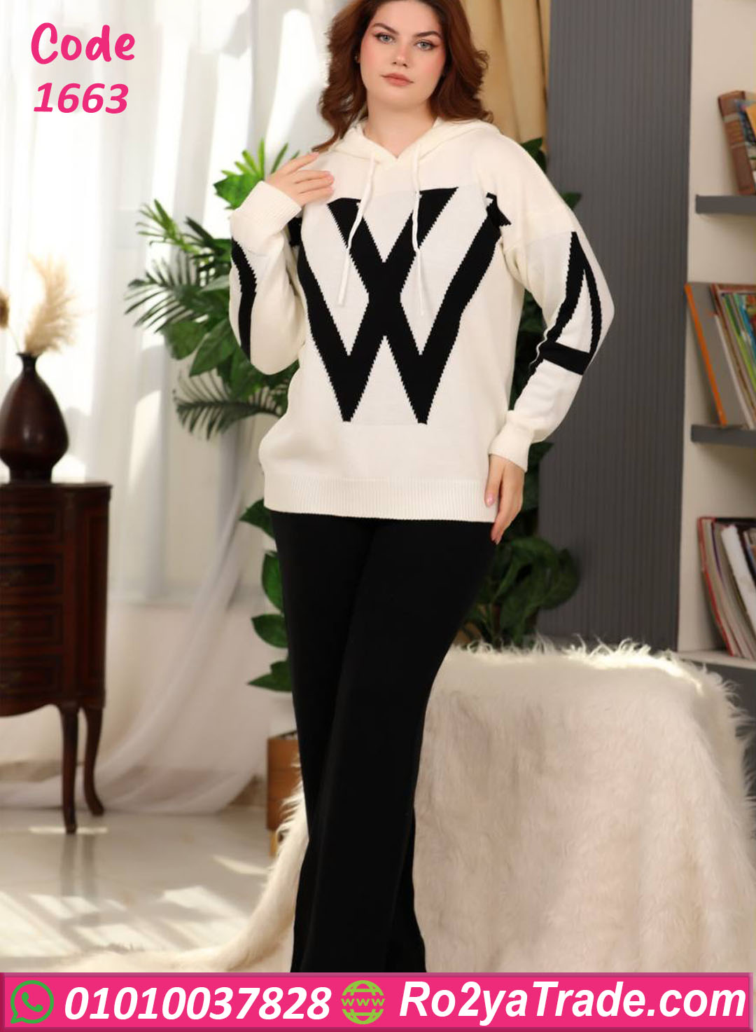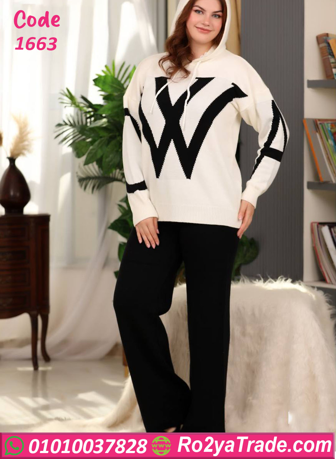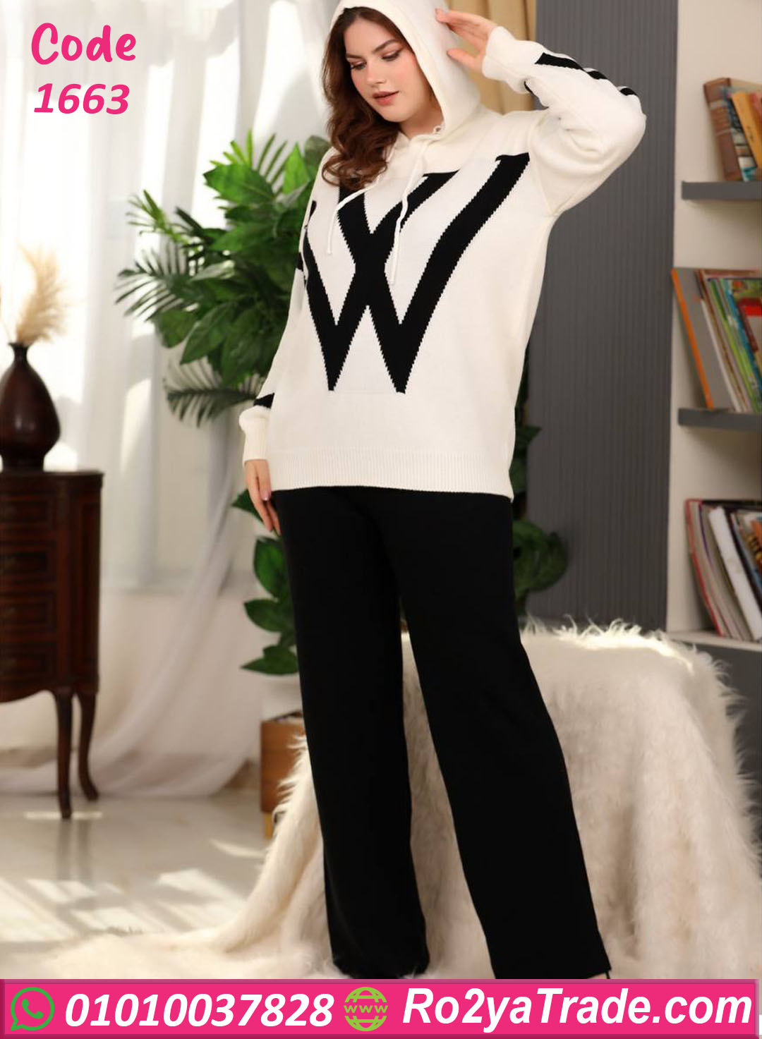 تصميم عصري بحرف W بارز بيضيف لمسة فخمة، والخامة مريحة جدًا على الجسم. البنطلون واسع بخامة مرنة بتدي حرية حركة ودفا طول اليوم.