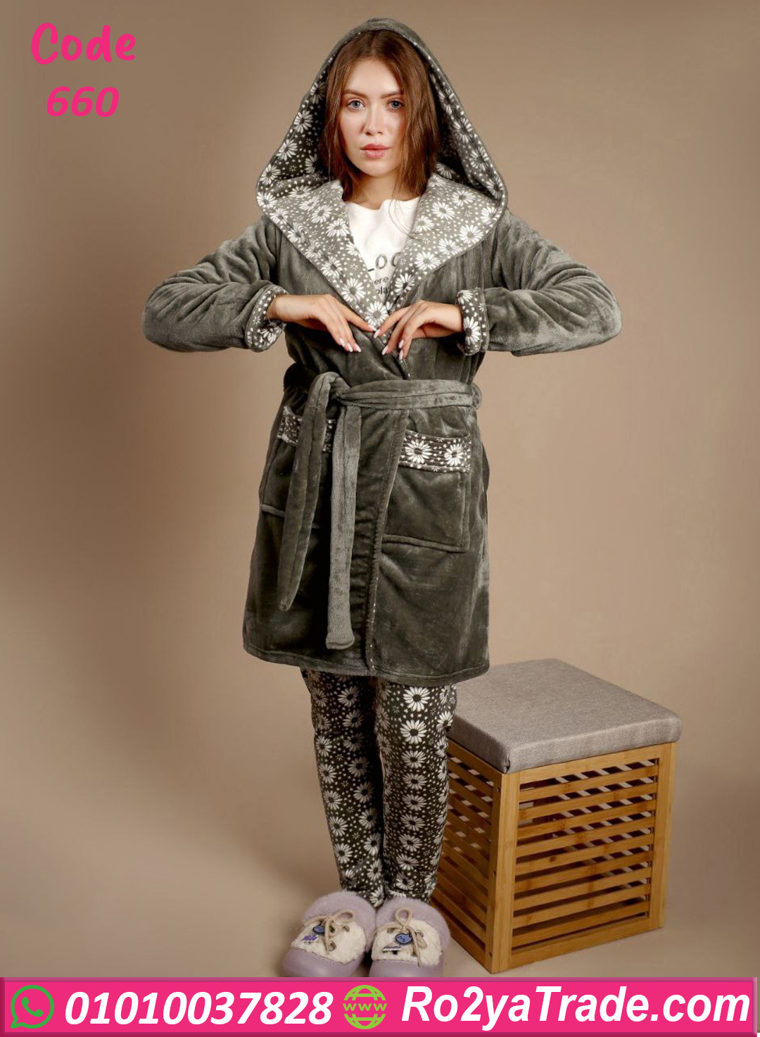 ترينج شتوي عملي وشيك مع روب قطيفة ناعم جدا