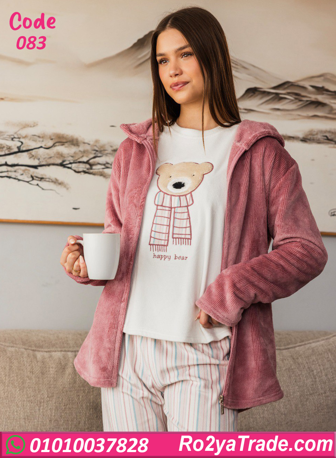 بيجامة قطيفة حريمي شتوي كود 083 اختيار مثالي لكل ست بتدور على الدفا والراحة مع ستايل هادي وعملي. الخامة القطيفة التقيلة بتساعد على الاحتفاظ بالحرارة وبتدي إحساس ناعم ومريح على الجسم من غير أي تقيل. التصميم مريح وعملي، ينفع للبس اليومي في البيت أو في أوقات الاسترخاء، وبيجمع بين البساطة والشياكة في قطعة واحدة.