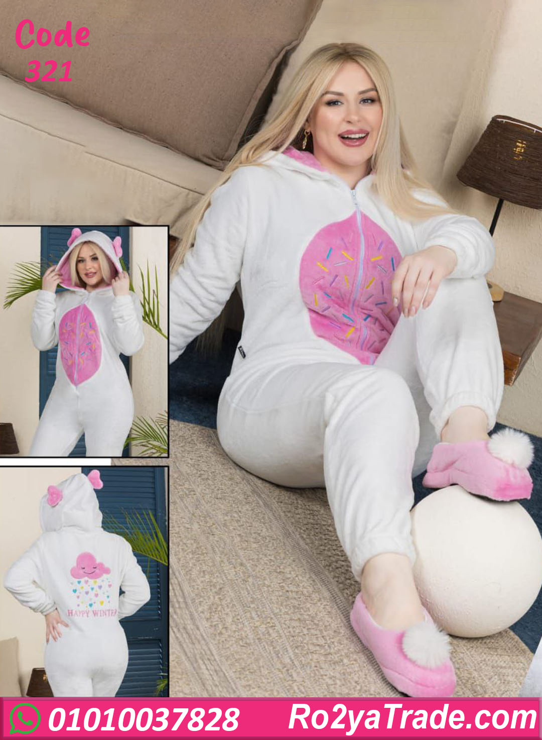 التصميم قطعة واحدة بسوستة كاملة وقبعة بتفاصيل لطيفة، مريح في اللبس وبيوفر حرية حركة، مناسب للبس البيتي اليومي.
