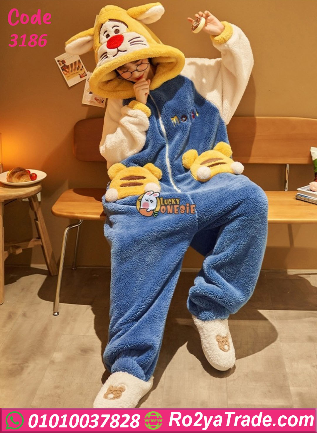 جمبسوت شتوي ناعم جدًا بخامة فُرو دافية ومريحة، تصميم كيوت بشخصية لطيفة وسوستة أمامية لسهولة اللبس 🐻💙