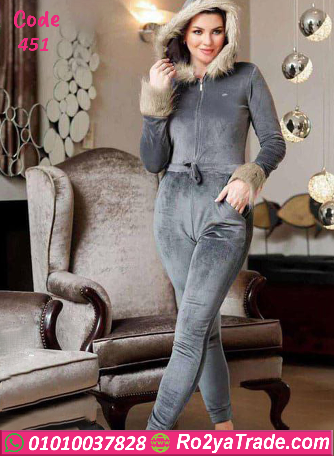 جمبسوت شتوي قطيفة ناعمة بخامة دفا ممتازة وجودة عالية، بكابيشو مبطن بفرو ناعم على الياقة والأكمام بيدي شكل شتوي جذاب. تصميمه قطعة واحدة بسوستة أمامية ورباط على الوسط لتظبيط المقاس، مع جيوب جانبية عملية. مناسب للبيت والسهرات الشتوية، خامته تقيلة ومريحة ومش بتكش ولا بتوبر وسهل في الغسيل.