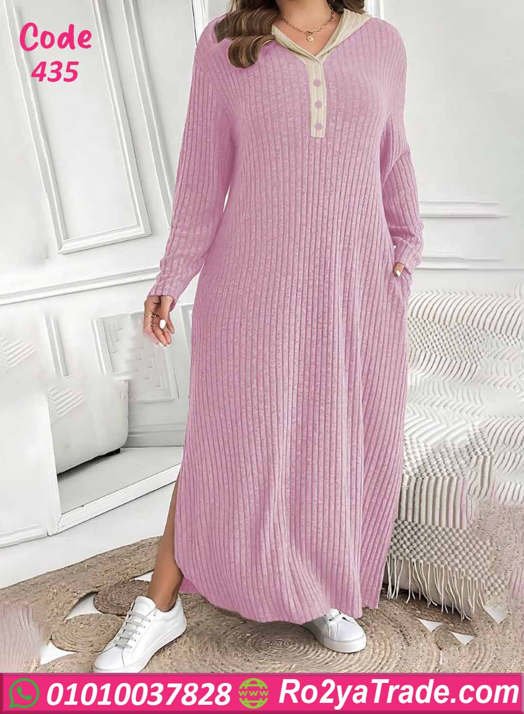 دريس بيتي كود 435 من ماركة Big Ladies بتصميم طويل وخامة مضلعة مرنة توفر راحة كبيرة أثناء الحركة مع مظهر أنيق وبسيط.