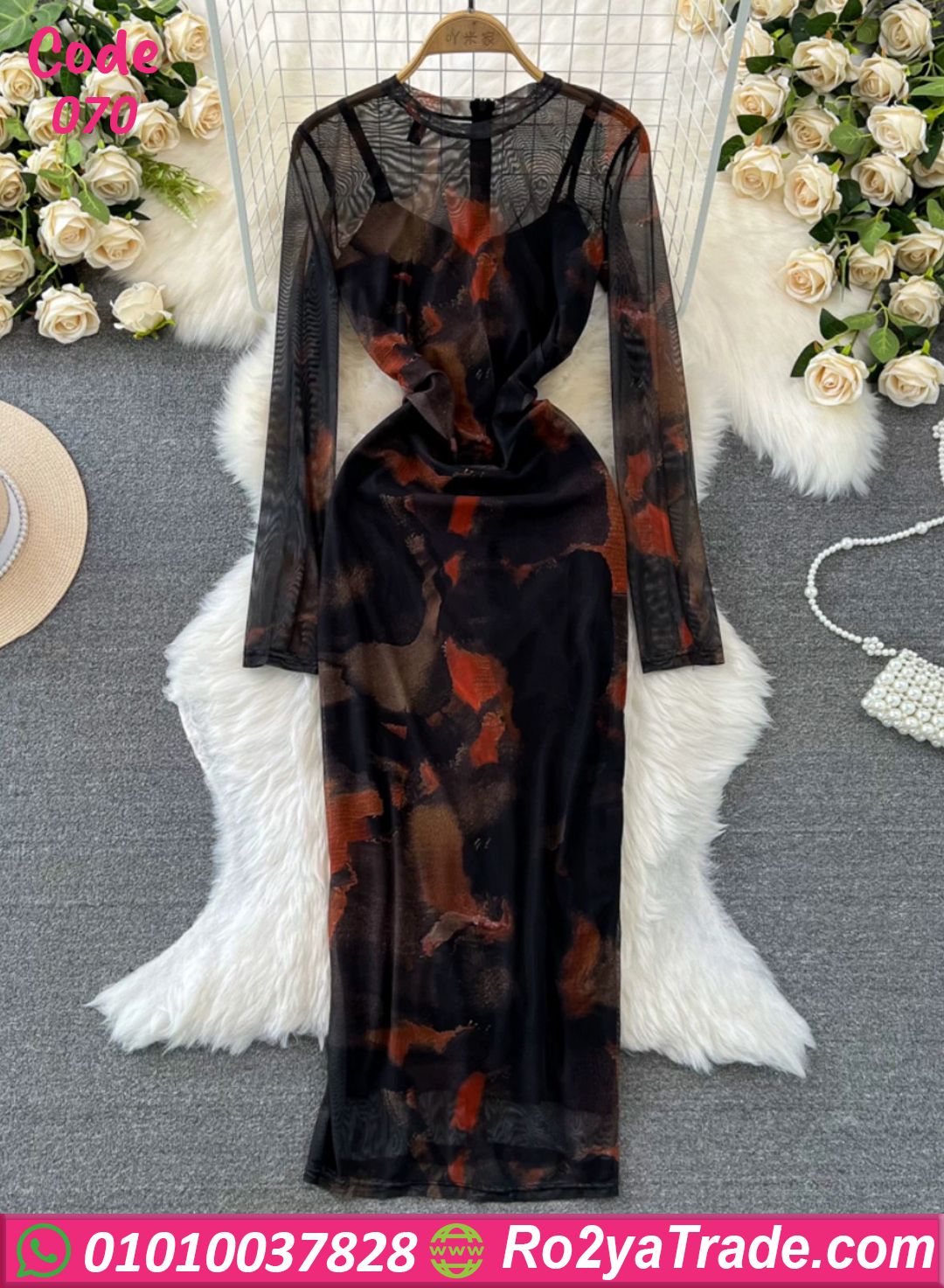 مصنوع من تول خفيف شفاف على الجسم بخطوط نارية مودرن بتدي شكل شيك جدًا سواء في البيت أو الخروجات الصيفية. الكم الطويل الشفاف مدي لمسة كلاسيك راقية، والخامة مريحة جدًا على الجسم ومش بتلزق. تقدري تلبسيه ككاش مايوه، أو دريس سهرة ناعم في البيت.
