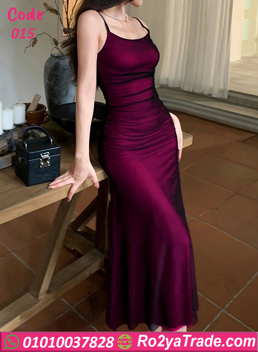 فستان لانجري طويل بخامة تول ناعمة وليكرا مرنة، بيبرز القوام ويديكي لمسة أنوثة راقية تناسب السهرات والمناسبات الخاصة ✨