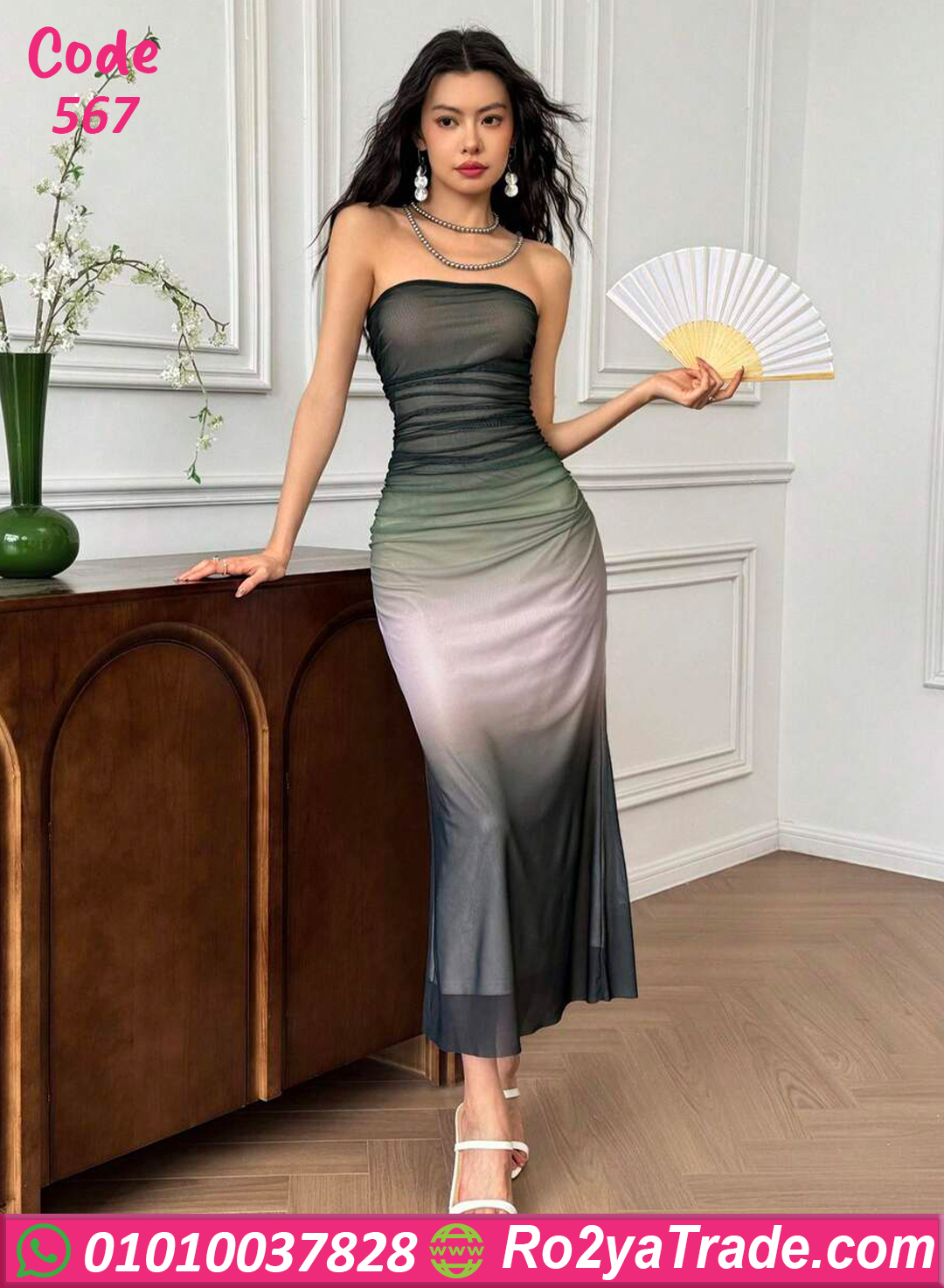 لو بتحبي الإطلالة الهادية والأنثوية، فدريس كود 567 هو اختيارك المثالي 💃 الخامة لايكرا مرنة ومريحة على الجسم، بتدي إحساس بالراحة وأناقة في نفس الوقت. اللون الأومبريه المتدرّج بين الرمادي الفاتح والأخضر المينت بيدي لمسة رقي مختلفة، وبيخلي الدريس شكله فخم جدًا سواء في خروجات النهار أو السهرات الصيفية. القَصّة ضيقة بتبرز القوام بطريقة شيك مش مبالغ فيها، مع منطقة الخصر المشدودة اللي بتدي شكل أنثوي جذاب. تقدري تلبسيه على كعب بسيط أو صندل مفتوح وهيكون الإطلالة كلها كلاس وأنيقة 😍 مناسب للبنات اللي بتحب اللبس البسيط بس ملفت في نفس الوقت، وهيخليكي تحسي إنك متألقة في كل مناسبة 💖