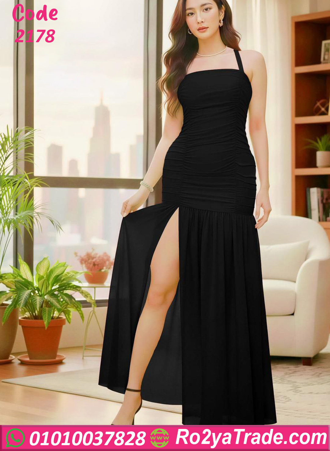 دريس صيفي طويل حريمي أنيق بفتحة جانبية جذابة – كود 2178