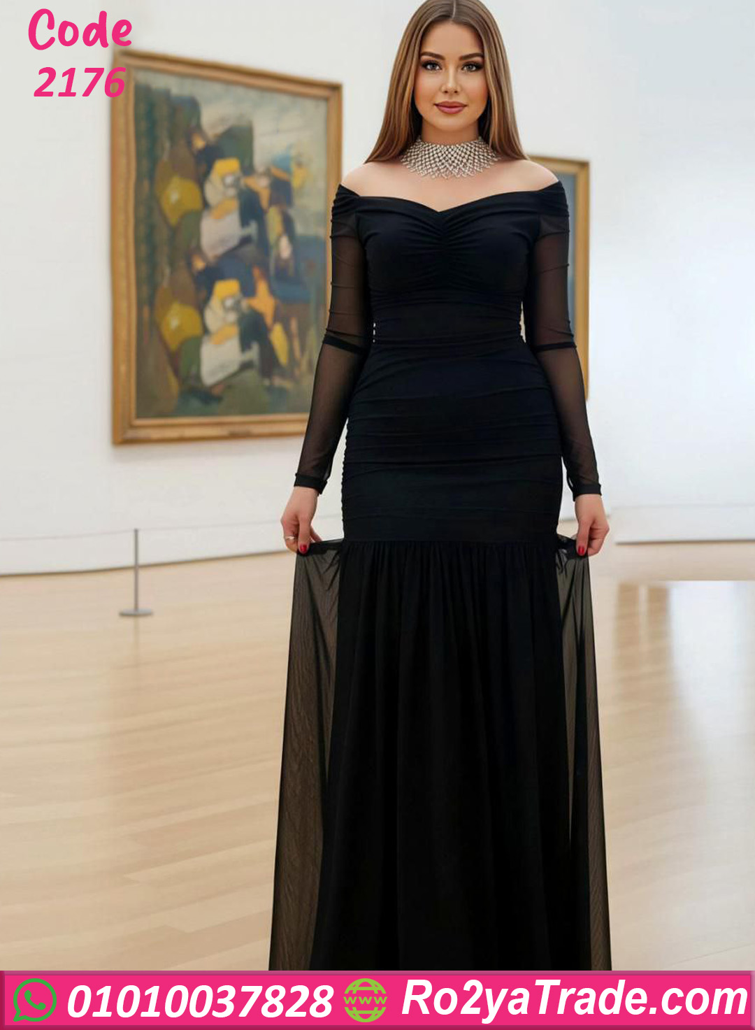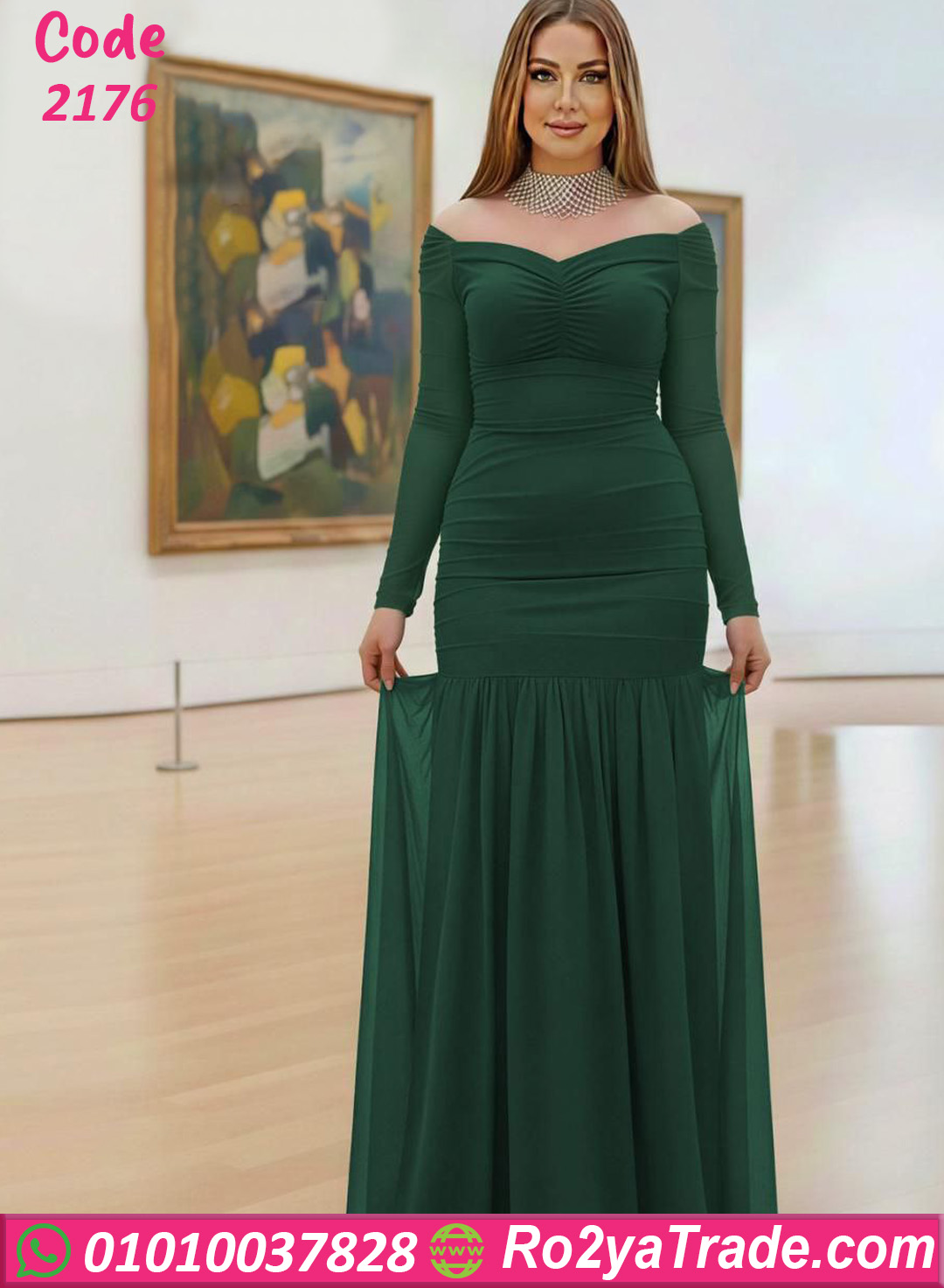 دريس صيفي طويل كود 2176 يتميز بتصميم أوف شولدر أنيق يبرز جمال الكتفين.