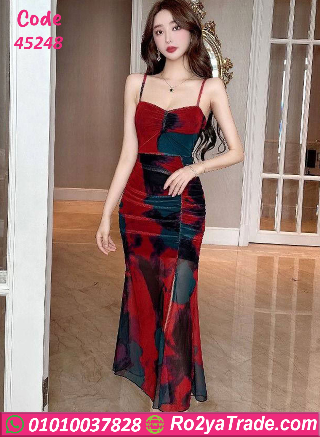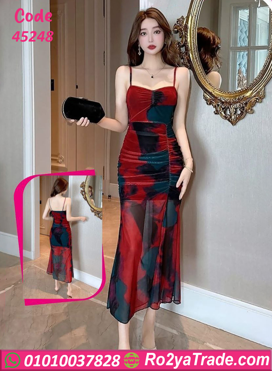 دريس صيفي طويل بتصميم حمالات رفيعة وقصة صدر أنثوية مع تحديد واضح على الخصر يبرز الجسم بشكل جذاب. خامة شيفون خفيفة بطبقة شفافة من أسفل تضيف حركة وانسيابية أثناء المشي، مع دمج ألوان نبيتى مع درجات غامقة تدي لوك عصري مختلف. مناسب للسهرات، المناسبات، والطلعات الخاصة اللي محتاجة إطلالة ملفتة وأنيقة.