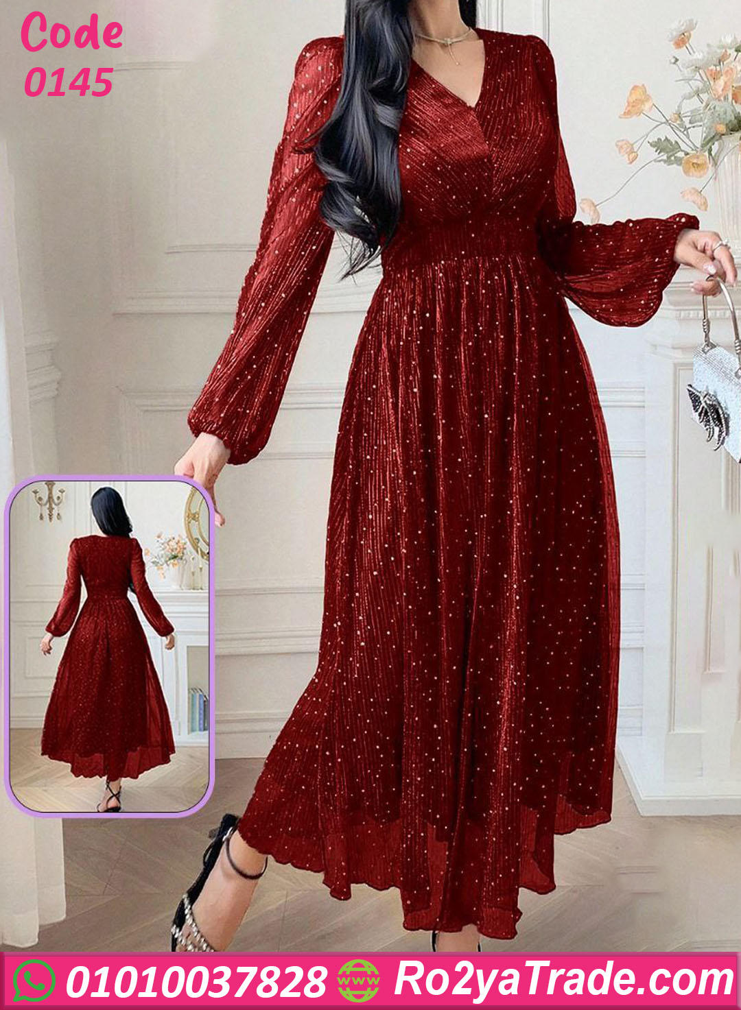 لو بتدوري على فستان يجمع بين الأناقة والفخامة، فإن موديل دريس صيفي طويل – 0145 يعتبر اختيار مثالي لإطلالة أنثوية راقية تناسب الخروجات والسهرات.