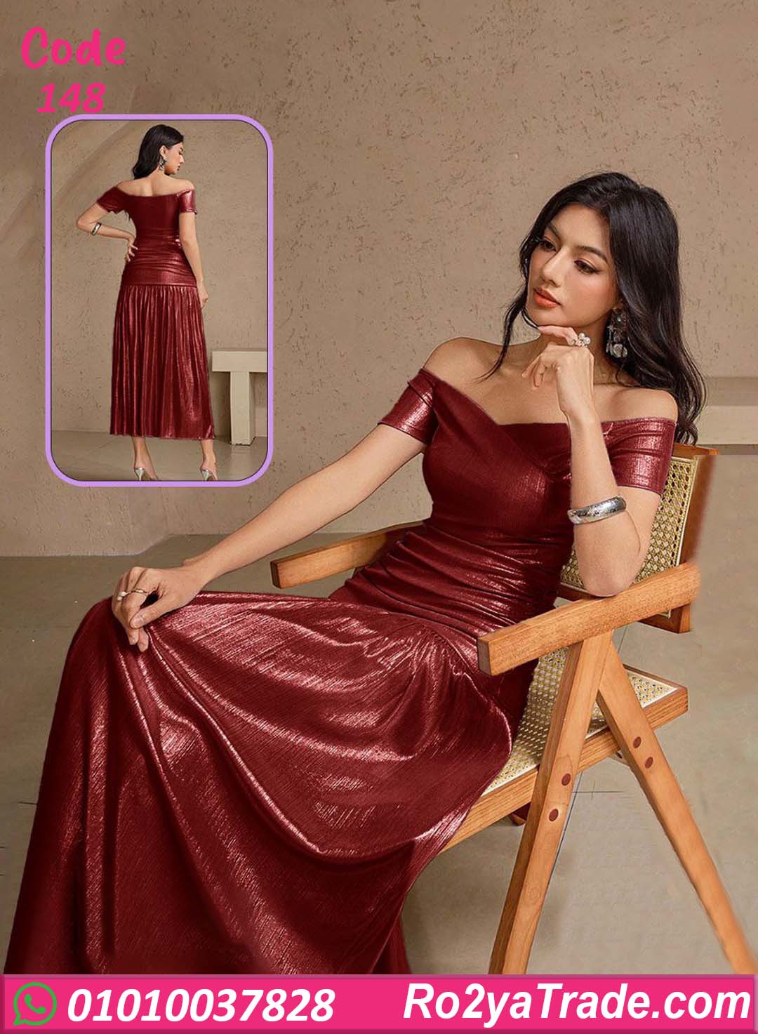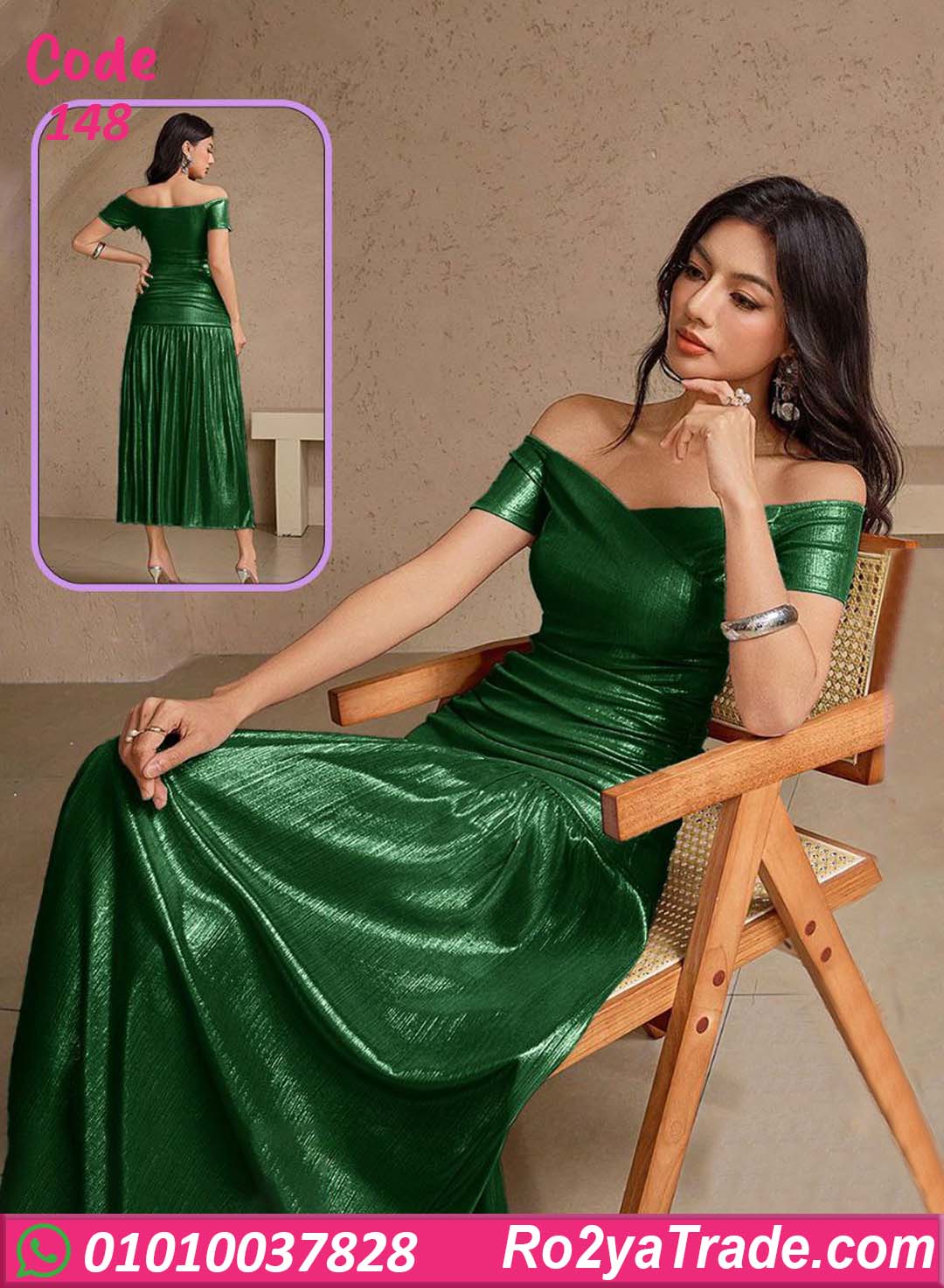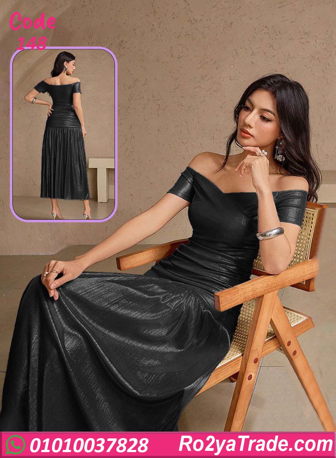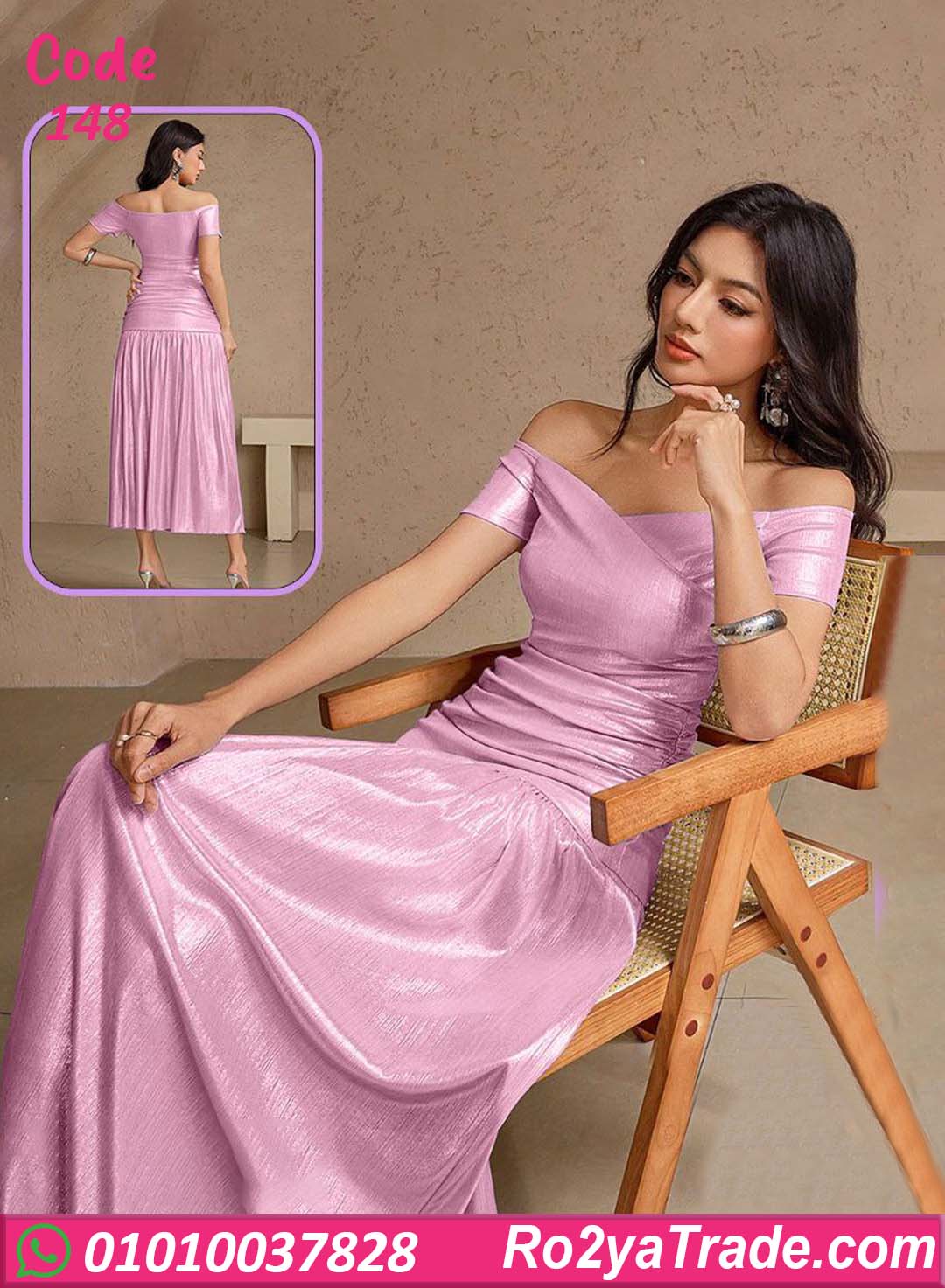 دريس صيفي طويل كود 148 اختيار مثالي لكل بنت بتحب الأناقة الهادية والتصميمات الكلاسيك اللي دايمًا موضة. الخامة ناعمة وخفيفة على الجسم، مناسبة للصيف وبتدي إحساس بالراحة أثناء اللبس من غير تقيل أو كتمة. التصميم أوف شولدر بيدي مساحة للكتاف ويبرز الجزء العلوي بشكل أنثوي جذاب، مع تحديد خفيف للخصر يساعد على إبراز القوام بطريقة متناسقة.