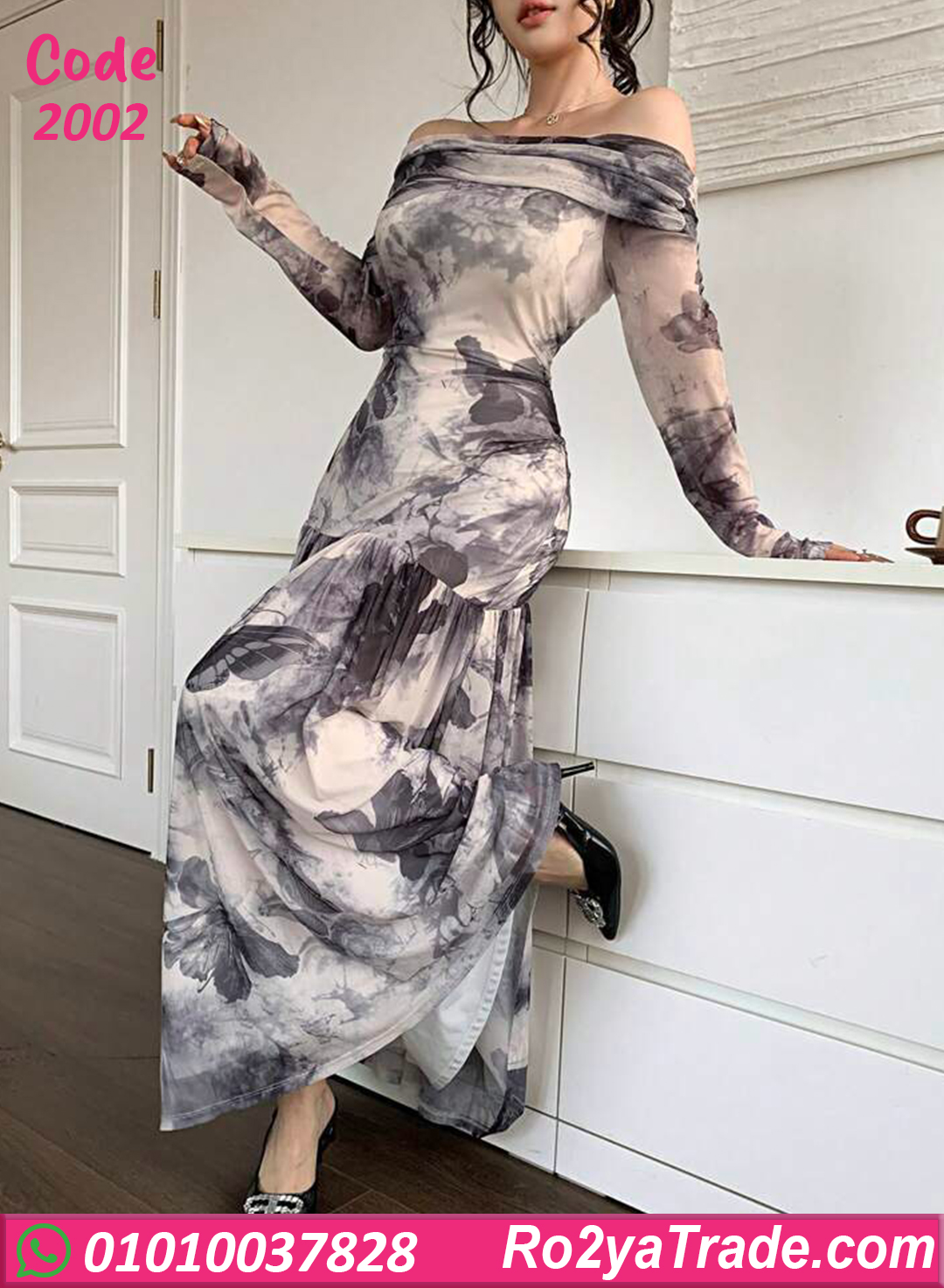 دريس صيفي طويل بتصميم أوف شولدر جذاب وطبعة فخمة بتدي إحساس بالرقي والأنوثة. الخامة خفيفة وناعمة على الجسم، بتاخد شكل القوام وبتوفر راحة في اللبس. قصّة الصدر العريضة مع الأكمام الطويلة بتوازن بين الجرأة والأناقة، اختيار مثالي للسهرات الصيفية والمناسبات الخاصة والخروجات الراقية.