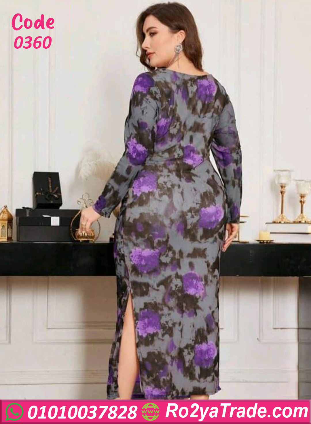 دريس صيفي طويل كود 0360 تصميم طويل وشيك جدًا يبرز القوام بأنوثة وثقة. الموديل جاي بطبعة ورود بدرجات البنفسجي والرمادي على أرضية هادئة، وده مدي شكل كلاسيك راقي ينفع للسهرات والمناسبات الخاصة.
