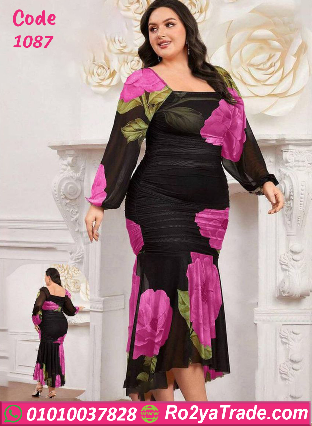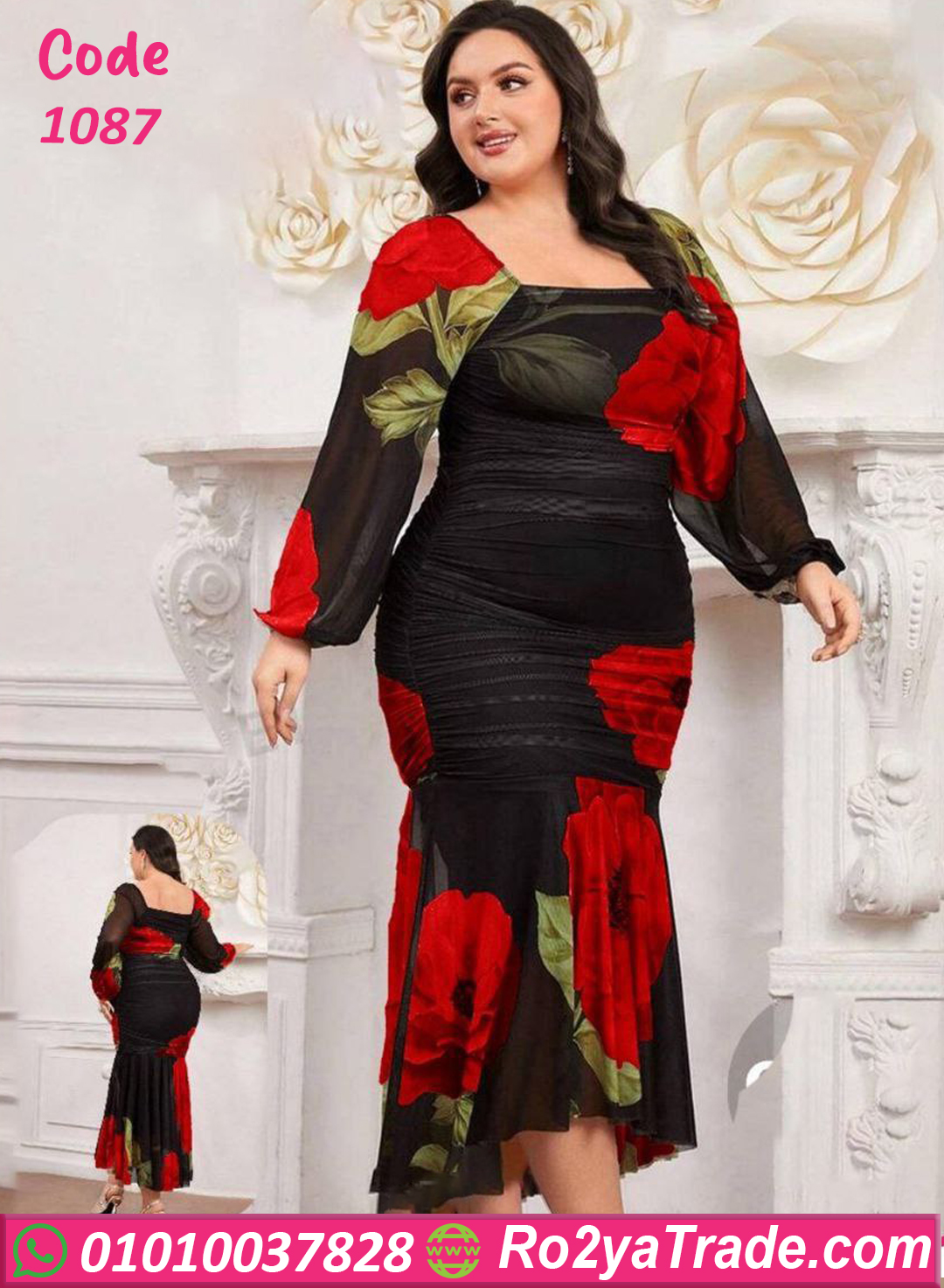 قصّة مجسمة تبرز جمال الجسم مع أكمام شيفون وورود كبيرة بتدي لوك أنثوي جذاب يناسب الخروج والسهرات والمشاوير المهمة. مناسب للمقاسات الكبيرة ويدّي شكل منحوت ومثالي.