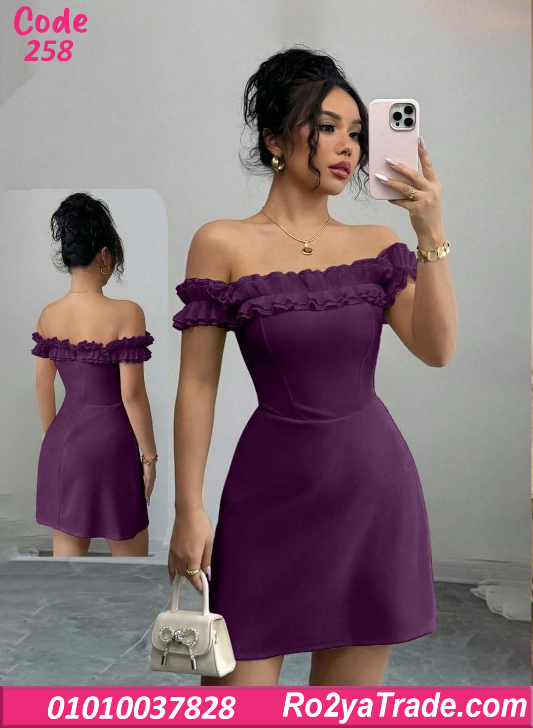 دريس صيفي قصير أوف شولدر بكشكشة أنيقة – كود 258