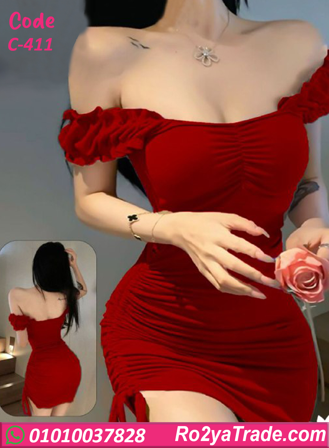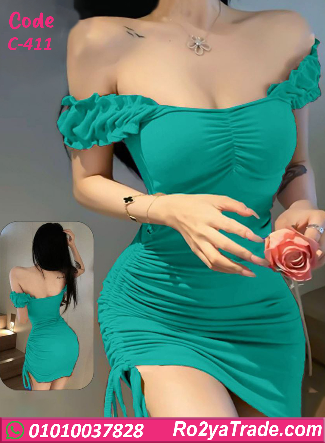 دريس صيفي قصير ستايل كتف مكشوف كود C-411 اختيار مثالي للبنات اللي بتحب الإطلالة الأنثوية البسيطة والجذابة في نفس الوقت. التصميم بييجي بقصّة ضيقة على الجسم بتبرز القوام، مع كشكشة جانبية بتدي شكل أنيق ولمسة عصرية. الخامة ناعمة ومريحة وبتدي حرية حركة، مناسبة للخروج، السهرات، أو اللبس اليومي الصيفي. الموديل عملي وسهل التنسيق مع كعب أو صندل حسب اللوك اللي تحبيه.